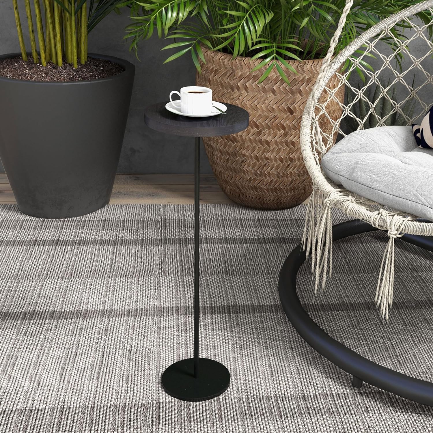 Round Side Table for Small Spaces, Modern Accent End Tall Martini Drink Table with Metal Weighted Pedestal Base Furniture for Living Room, Dorm, Home Office Bedroom