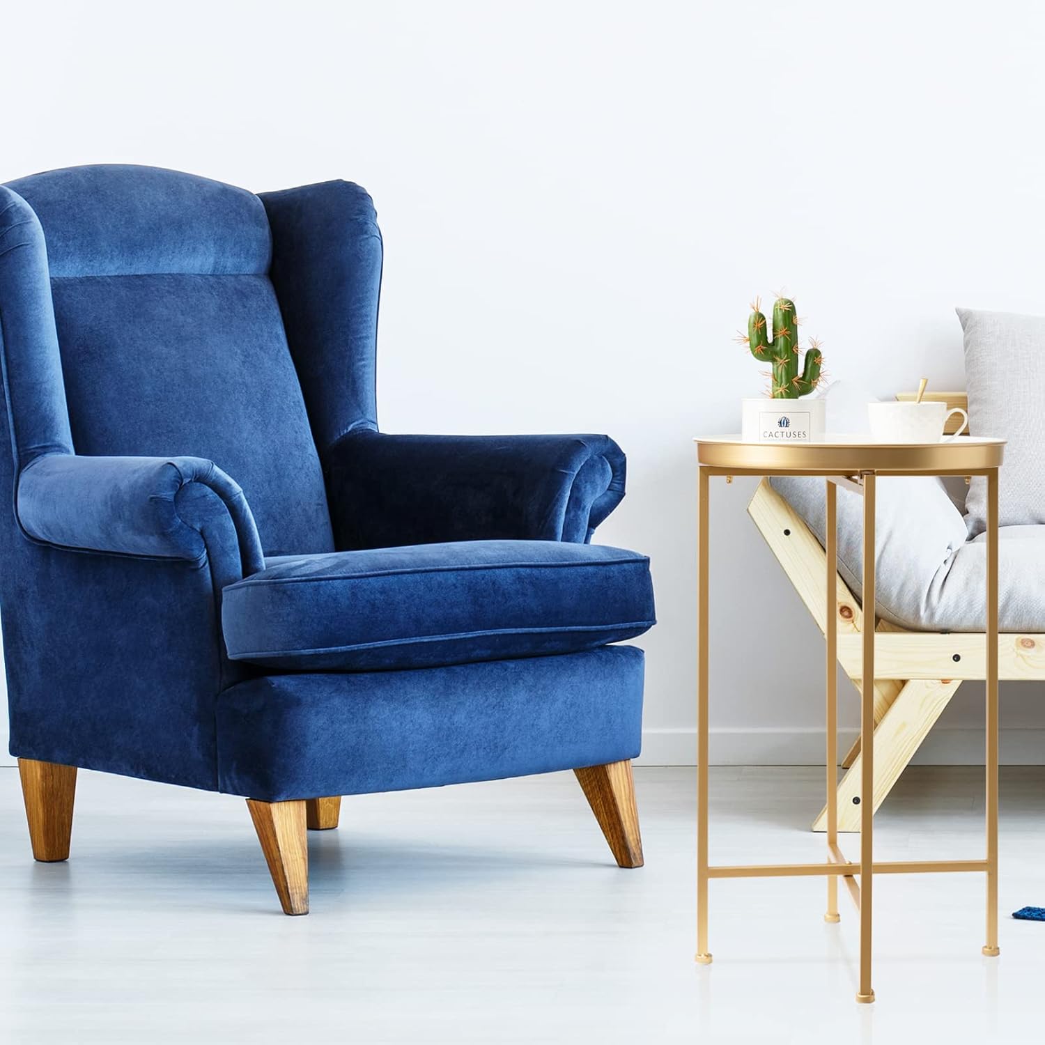 - Easy assembly: This accent table is easy to assemble. It only takes about 1-2 minutes to assemble this small side table. Just unfold the bottom piece to make the x and then put the tray on top, finally tighten the two screws