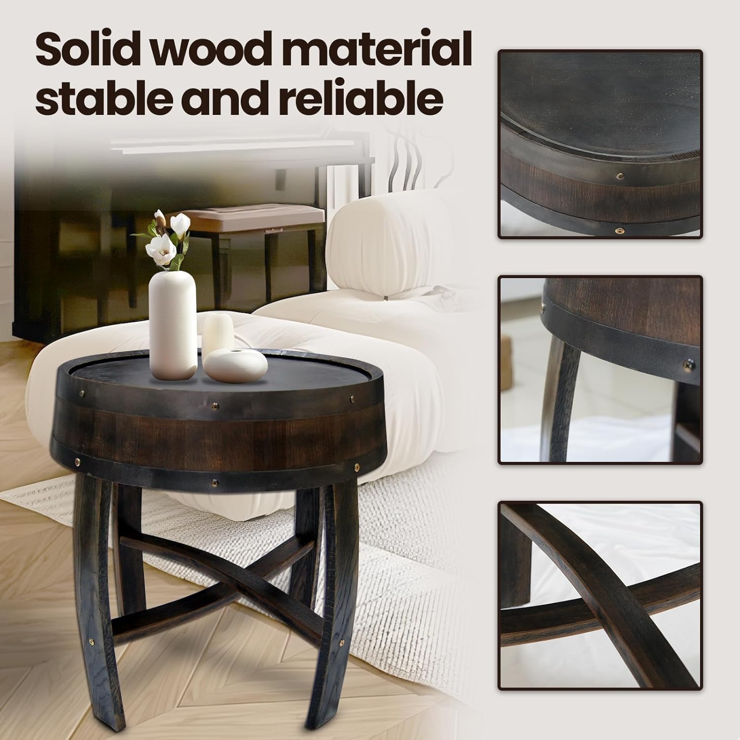 - Vintage Design Barrel-Shaped Wooden Table: This solid wood table combines the popular elements of the Middle Ages with retro shapes, rustic country style and exquisite details of the bourbon barrel table, making this barrel table a true masterpiece, showing a real and nostalgic beauty.