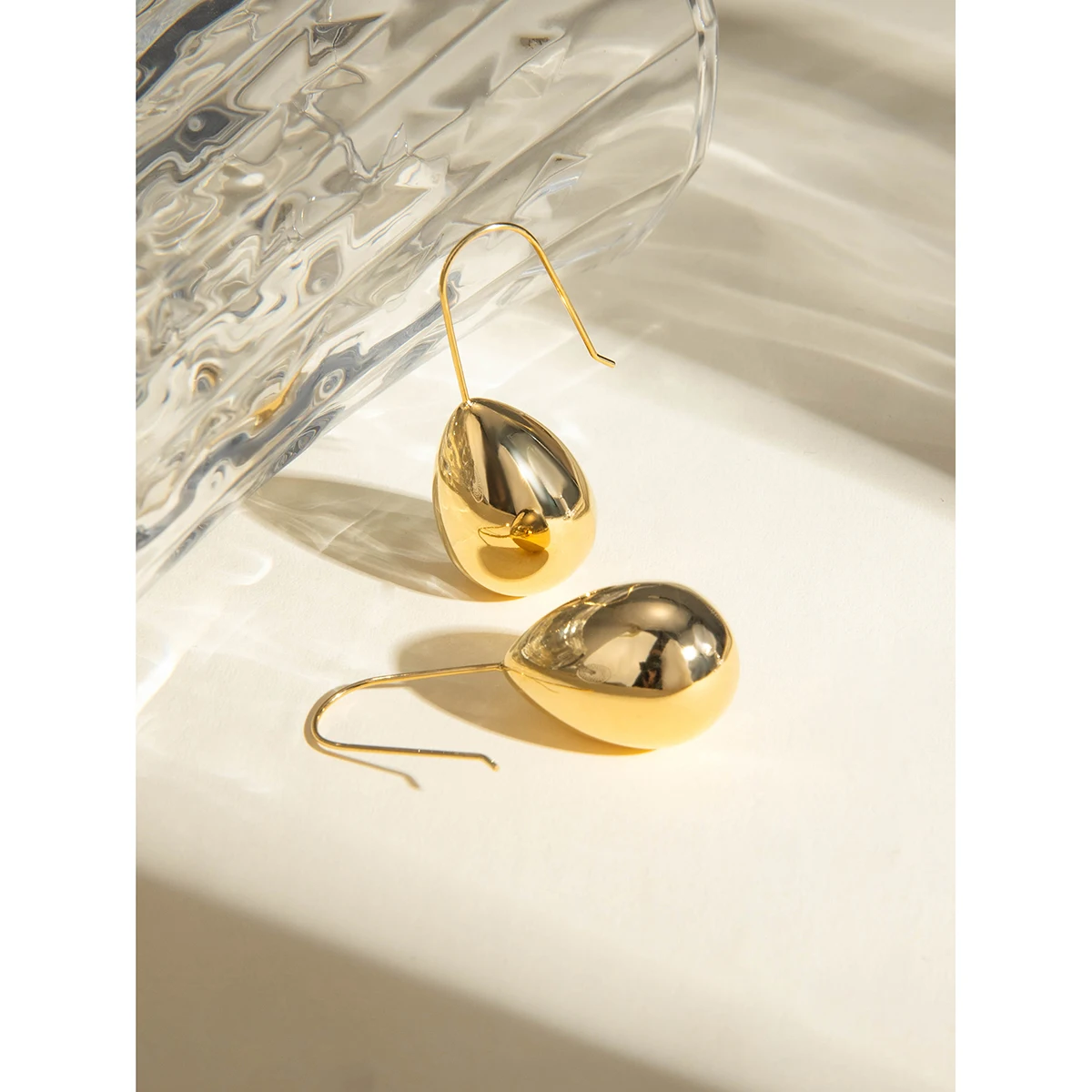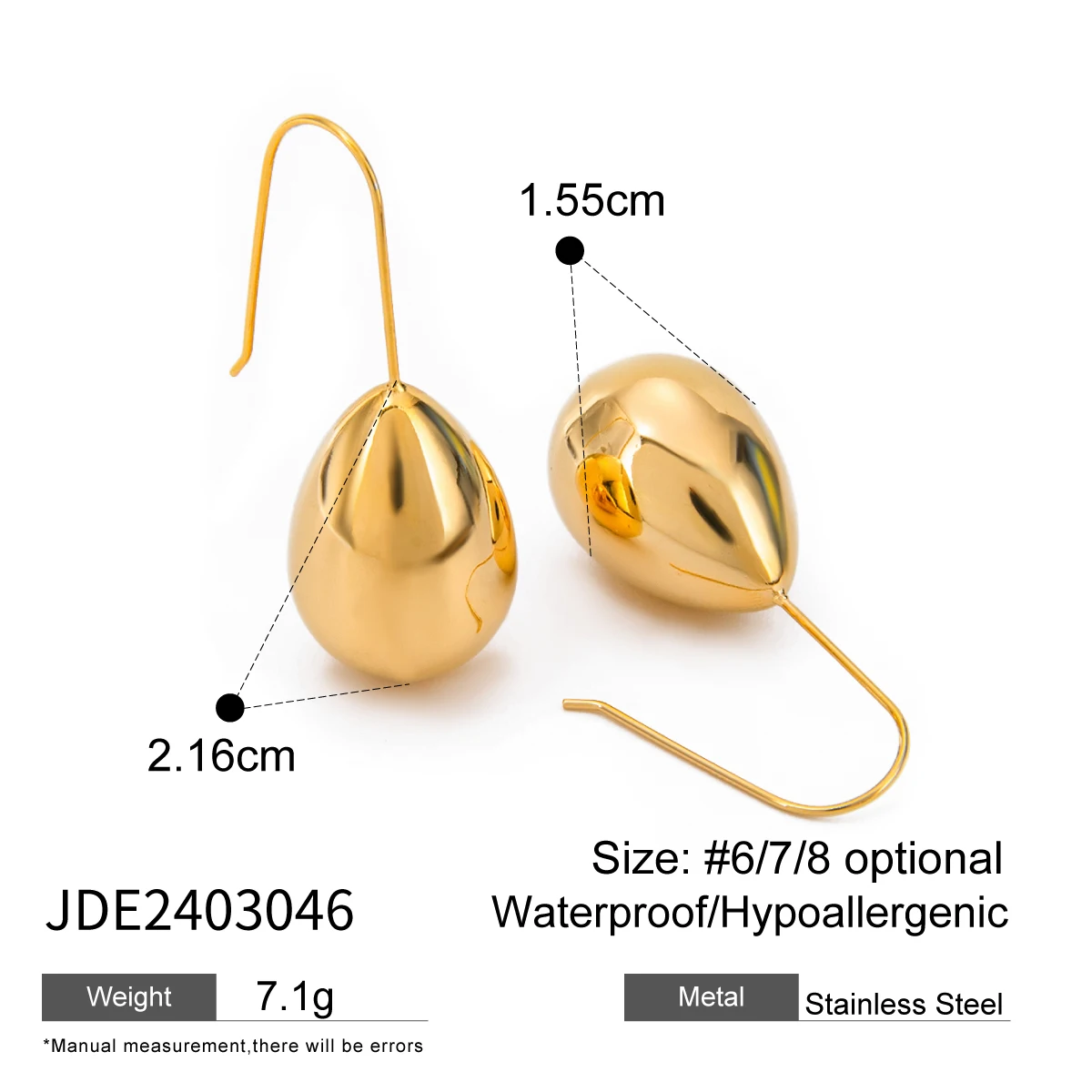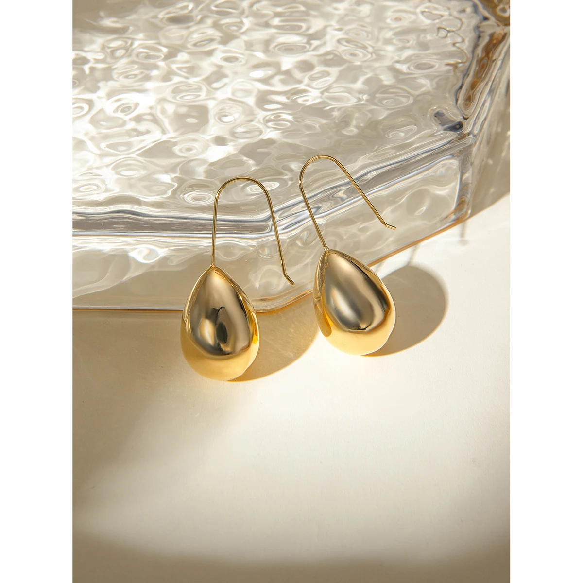 16K PVD Geplateerd Roestvrij Staal Holle Waterdruppel Oorhaak Oorbellen Waterdicht Modieus Vrouwen Fijne Sieraden Bijoux Femme