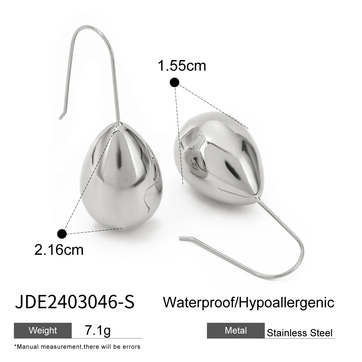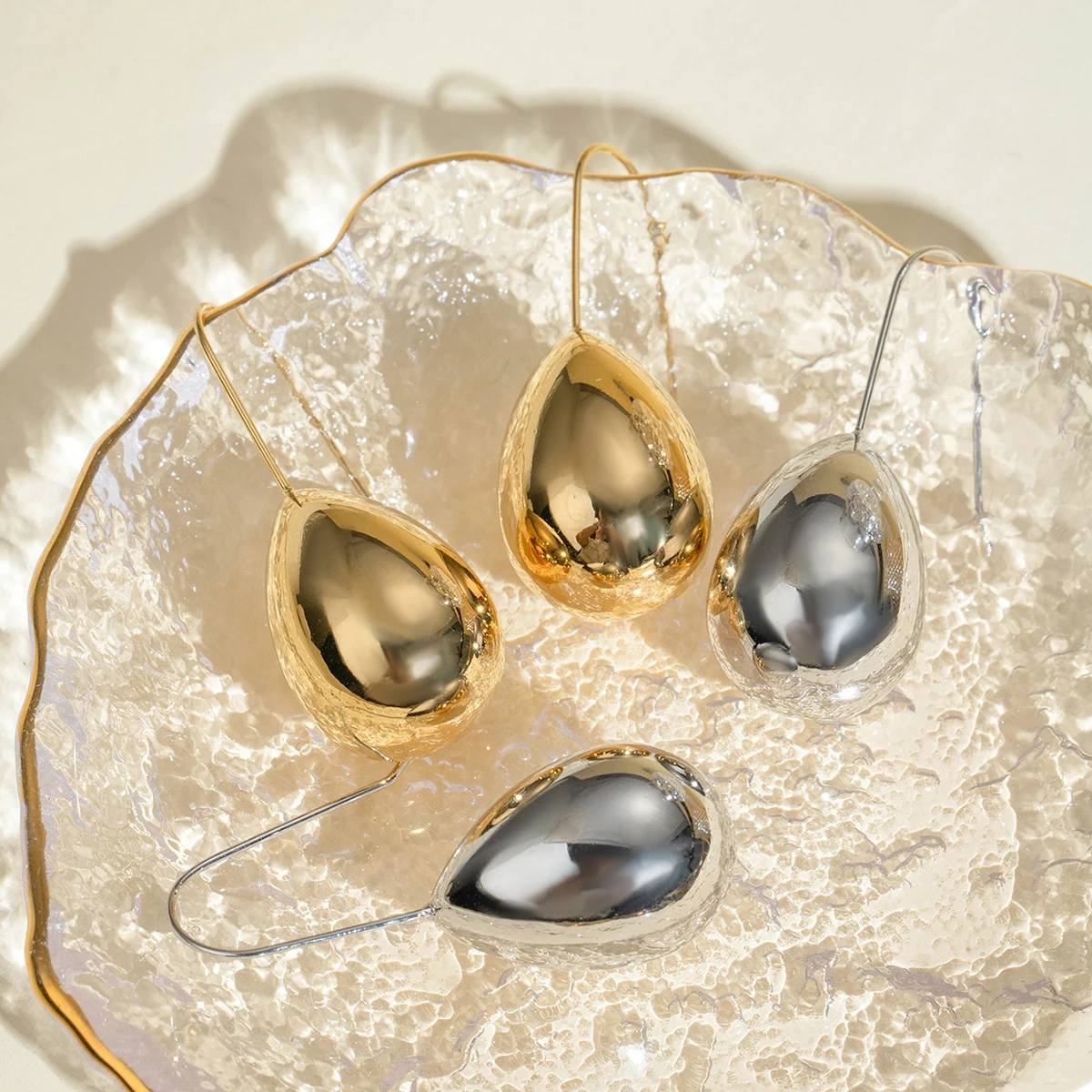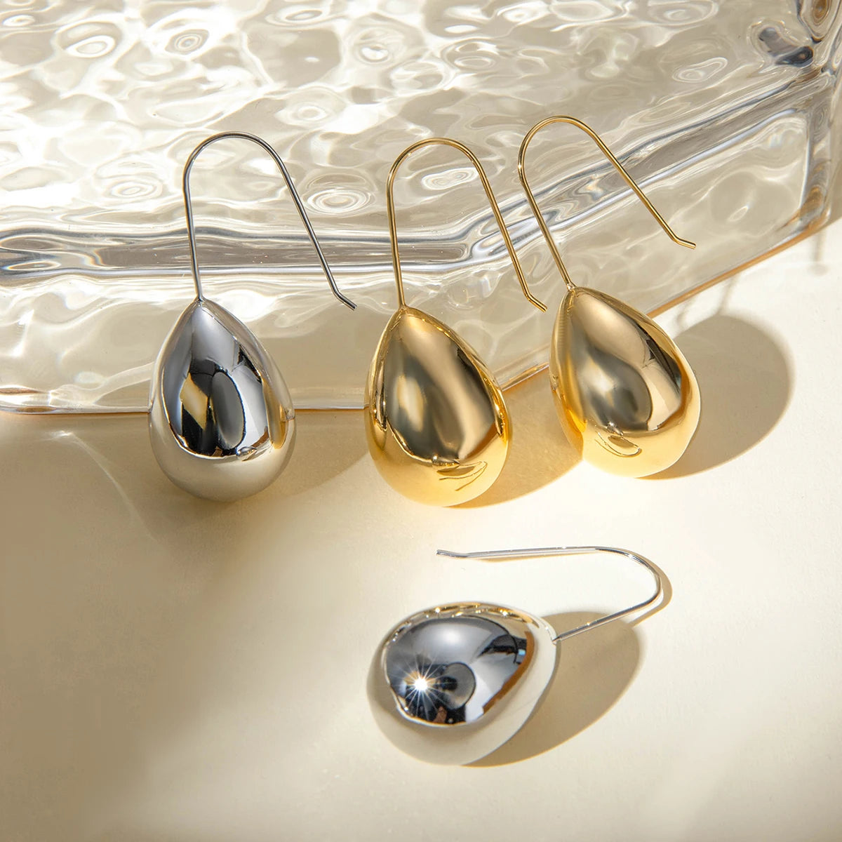 16K PVD Geplateerd Roestvrij Staal Holle Waterdruppel Oorhaak Oorbellen Waterdicht Modieus Vrouwen Fijne Sieraden Bijoux Femme