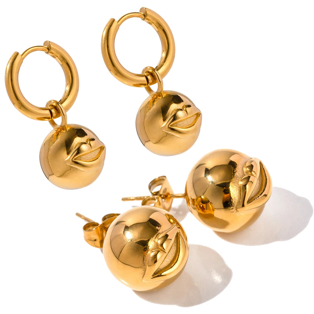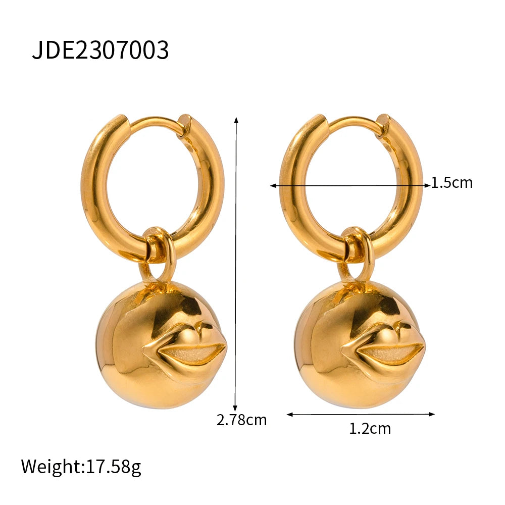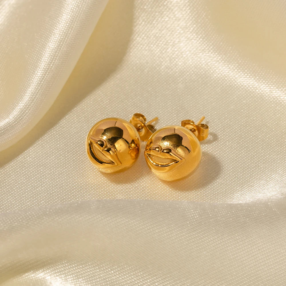 18K Goud Vergulde Verkleuringvrije Chunky Lippen Vorm Bol Oorstekers Roestvrij Stalen Waterdichte Oorbellen Accessoire Sieraden Vrouwen