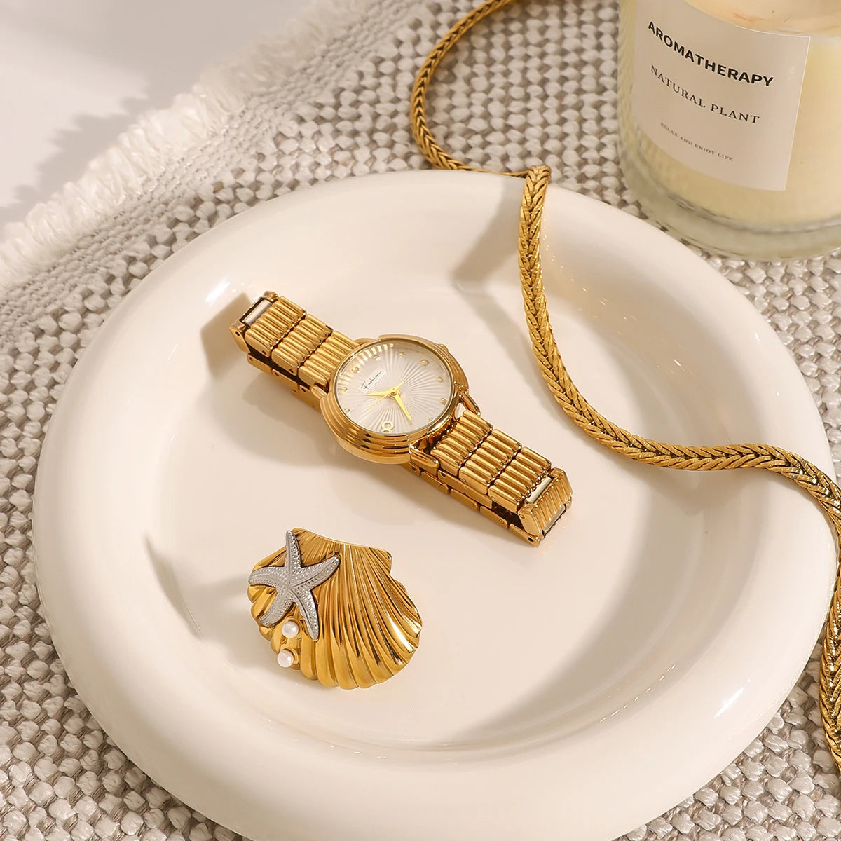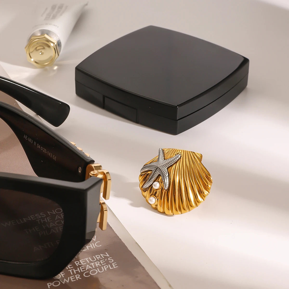 18k goud vergulde roestvrijstalen hamerkorrel zeester met imitatie parel schelpring dames allergiepreventie charm sieraden