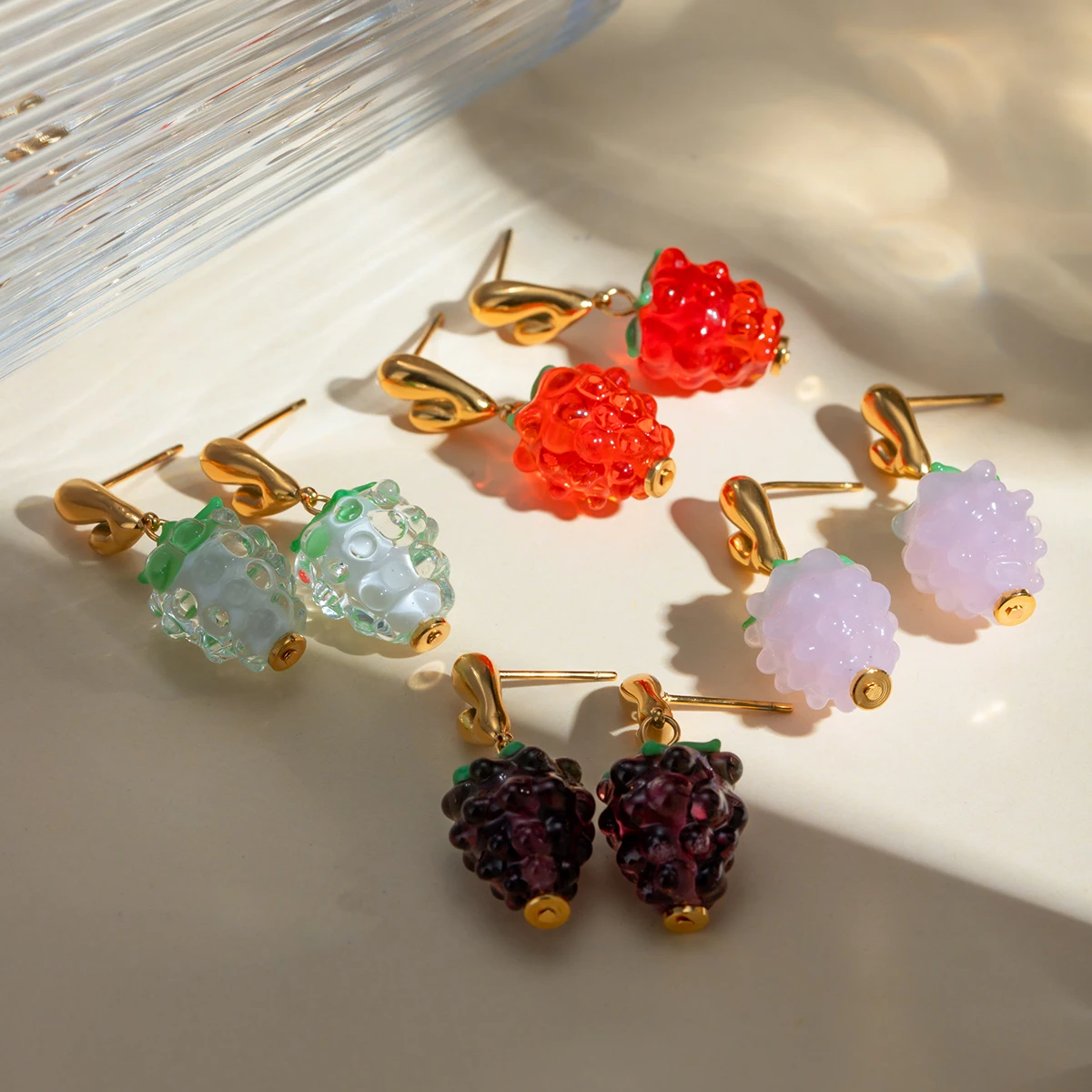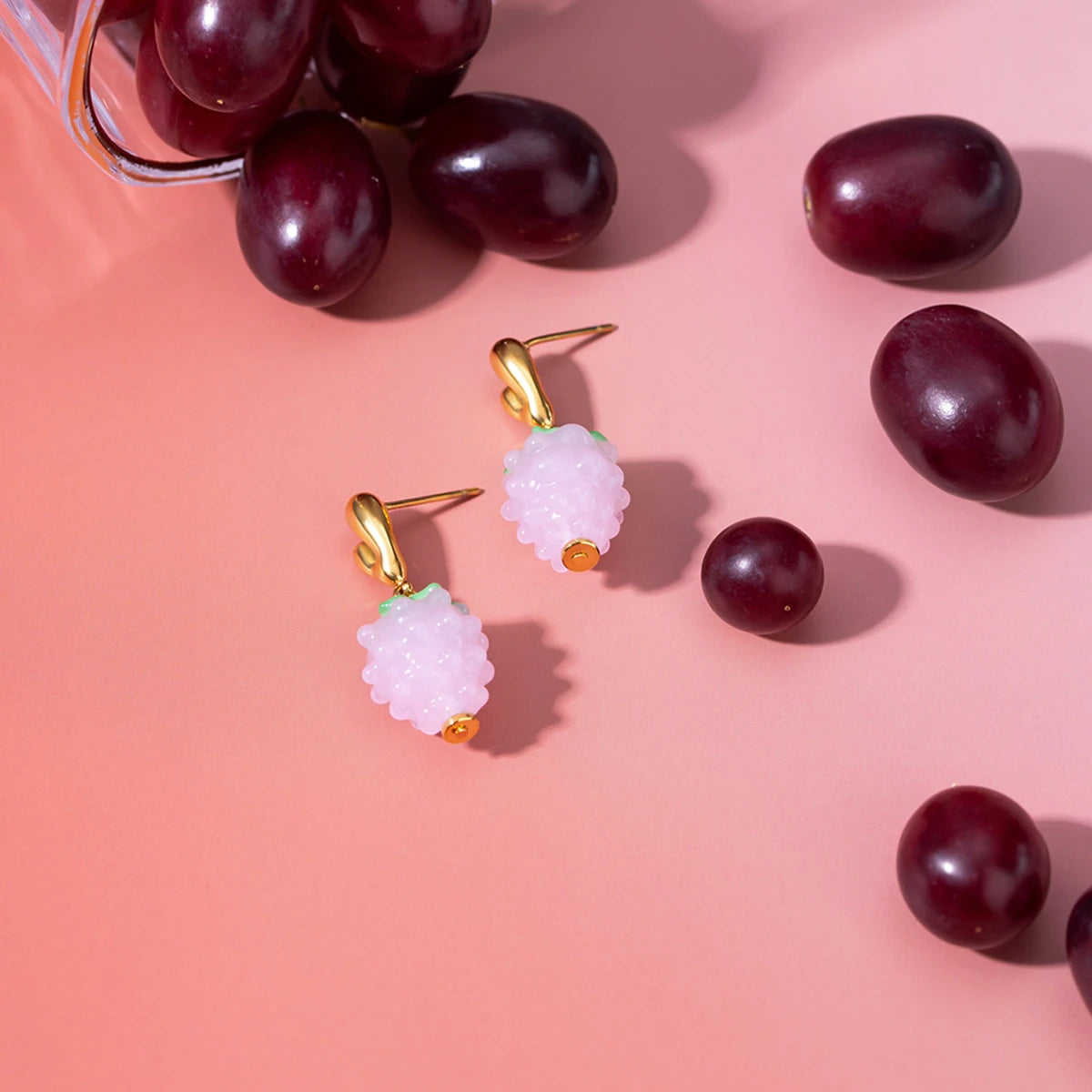 18K goud vergulde roestvrijstalen hars meerkleurige kleine druiven oorbellen verkleuringbestendige statement oorbellen vrouwen cadeau