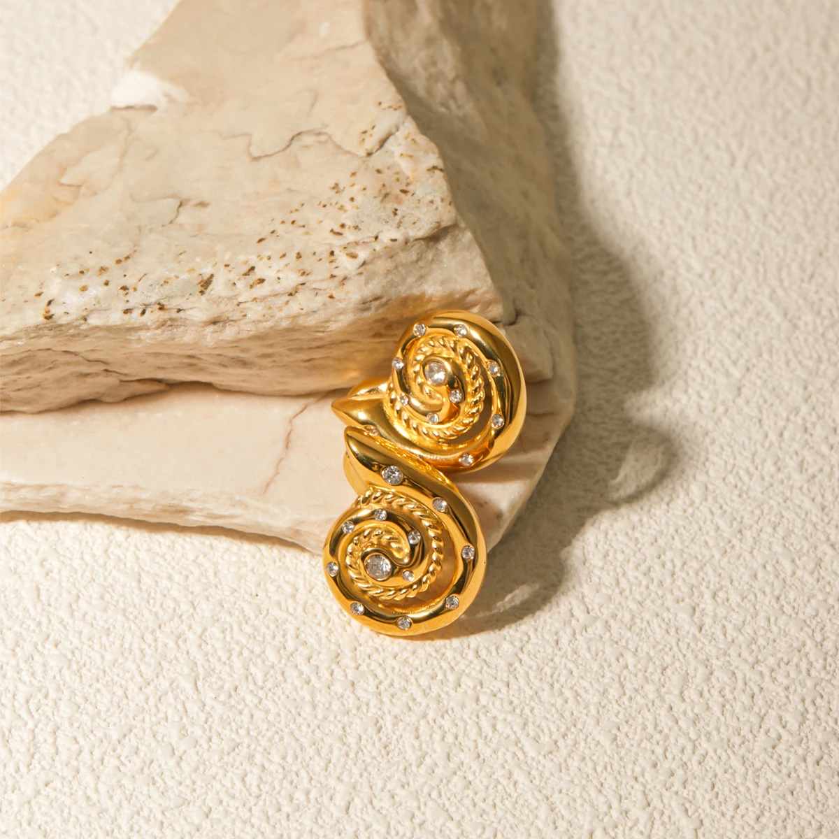 18K Goud Vergulde Vintage Roestvrij Stalen Geometrische Spiraal Lussen Ontwerp Oorbellen Inleg Rhinestone Statement Roestvrije Sieraden