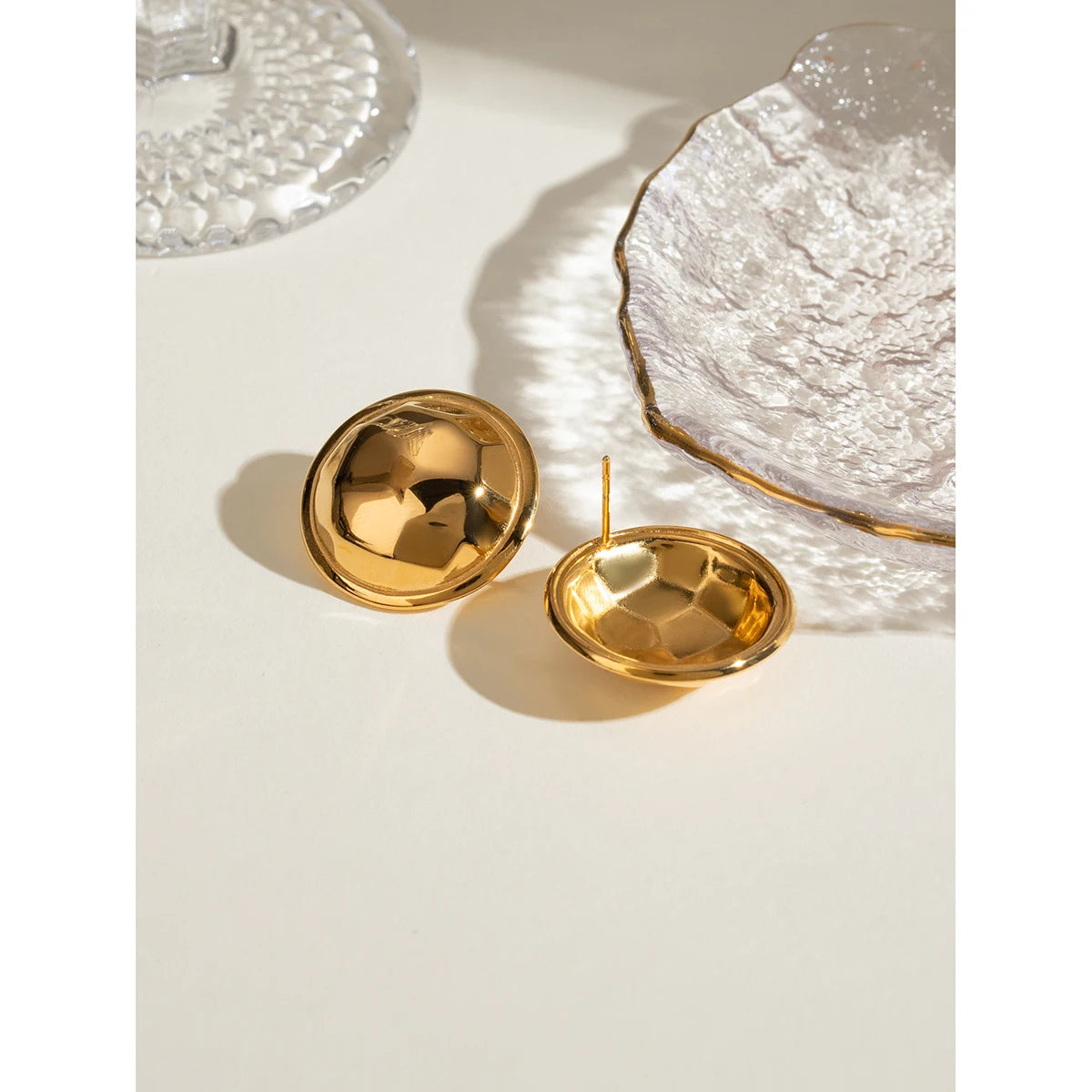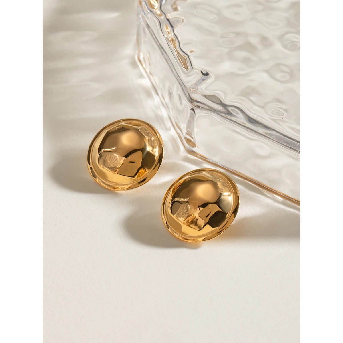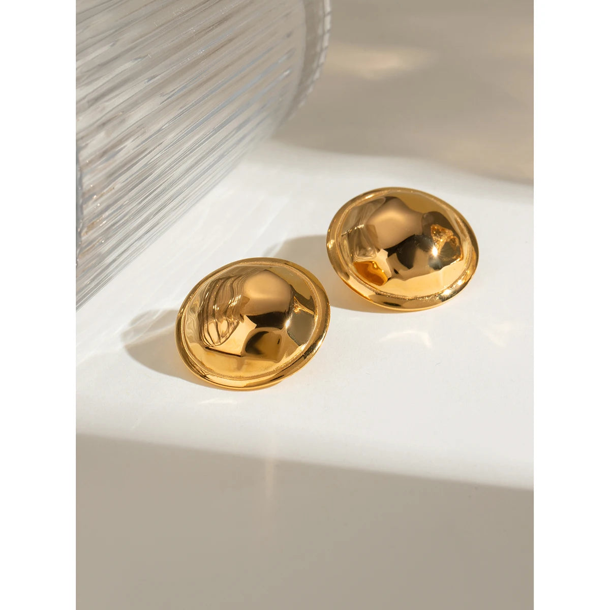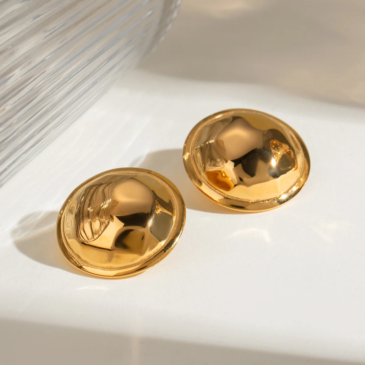 18K PVD minimalistische roestvrije roestvrijstalen ronde convexe hamerslagkorrel oorbellen anti-allergisch waterdichte sieraden voor vrouwen