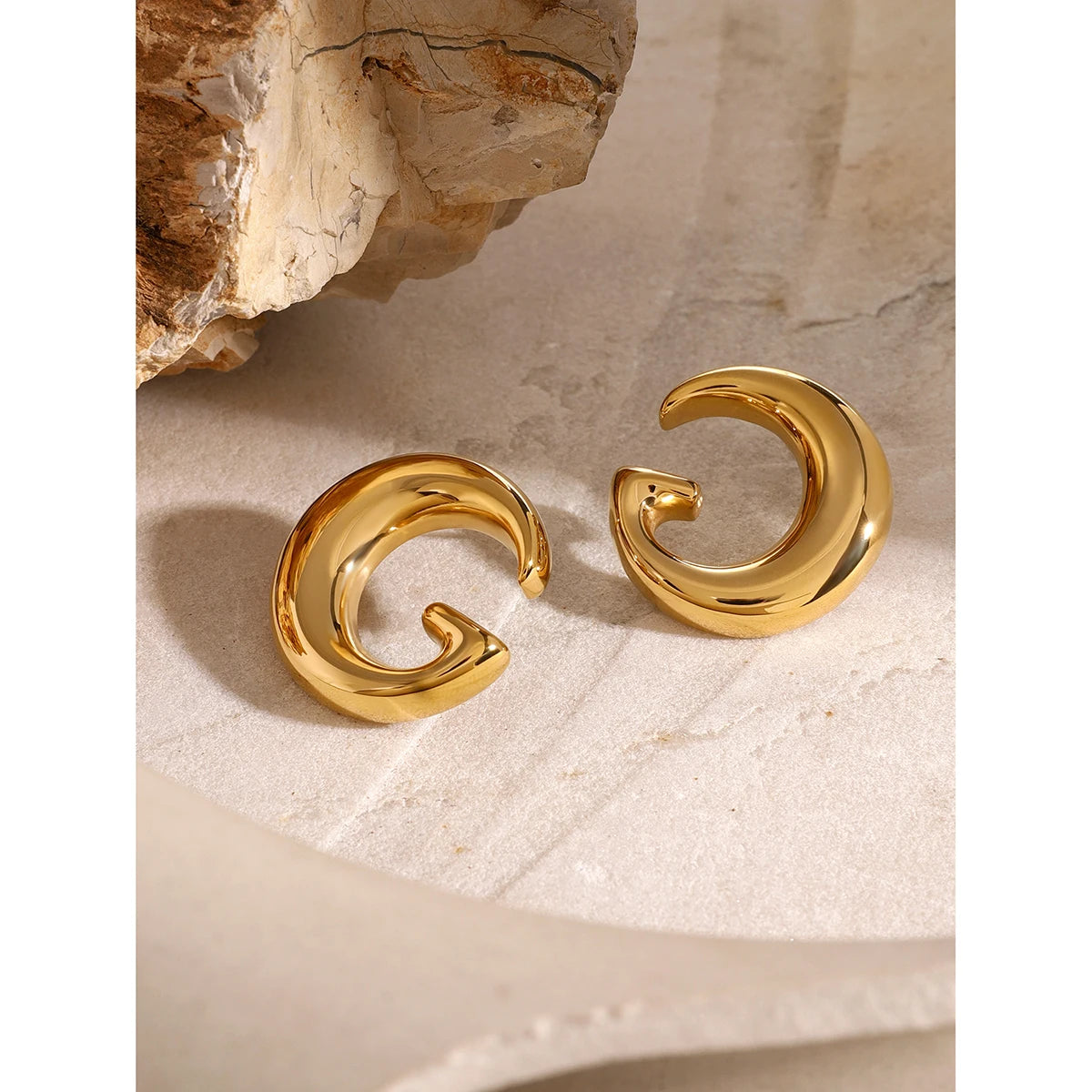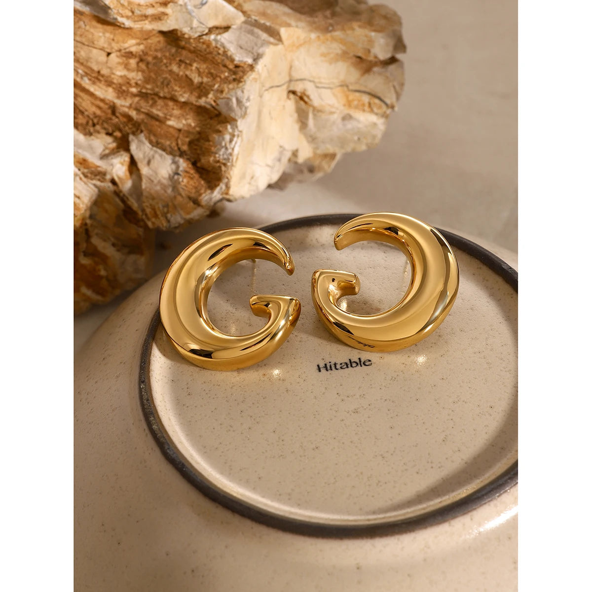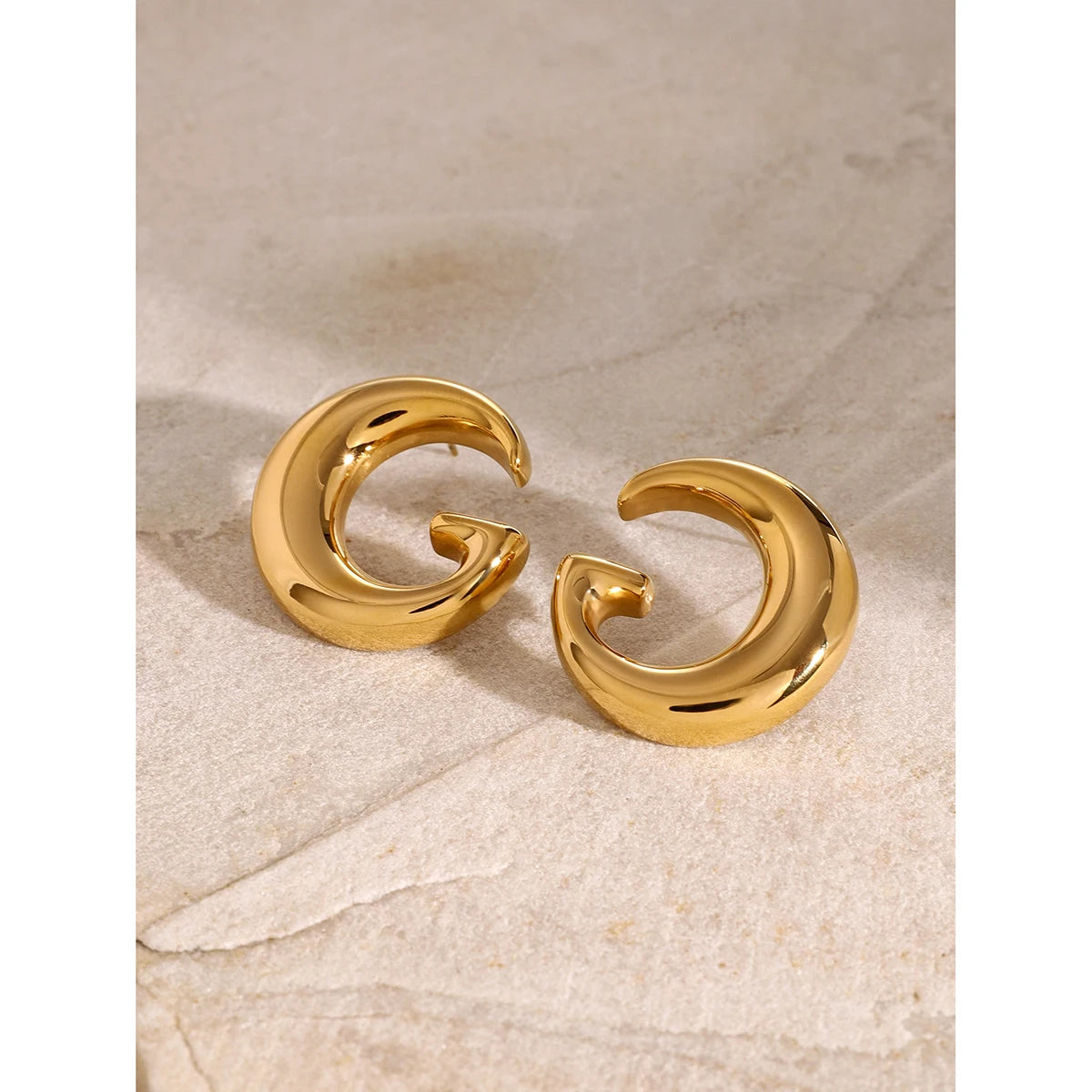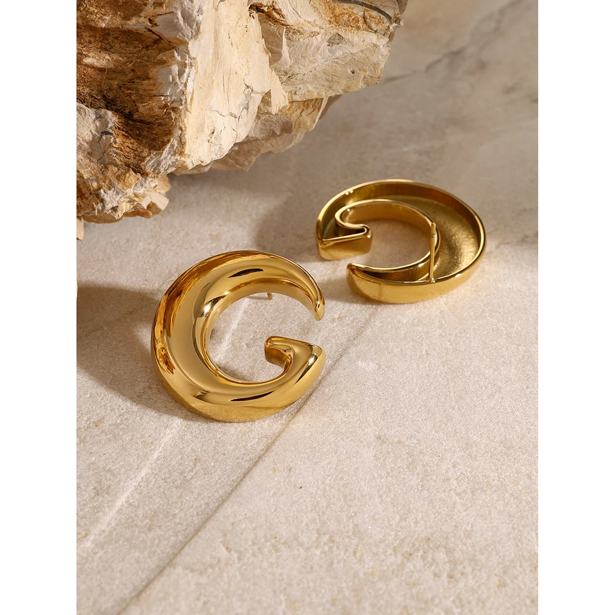 18K PVD minimalistische roestvrije ronde glanzende grote G letter glanzende oorbellen anti-allergisch vrouwen waterdichte sieraden van roestvrij staal