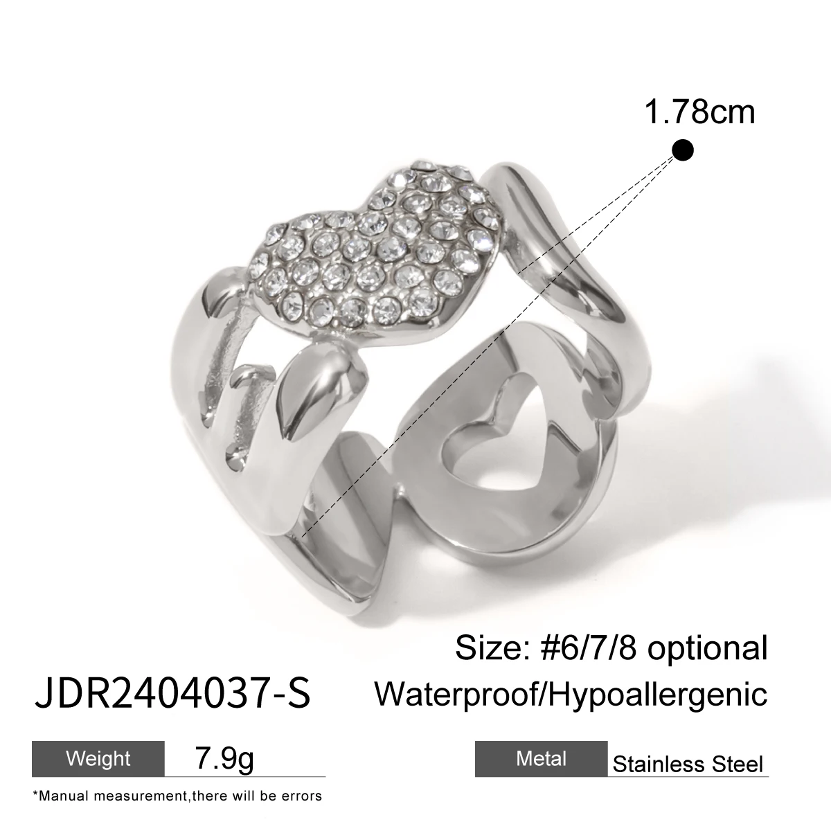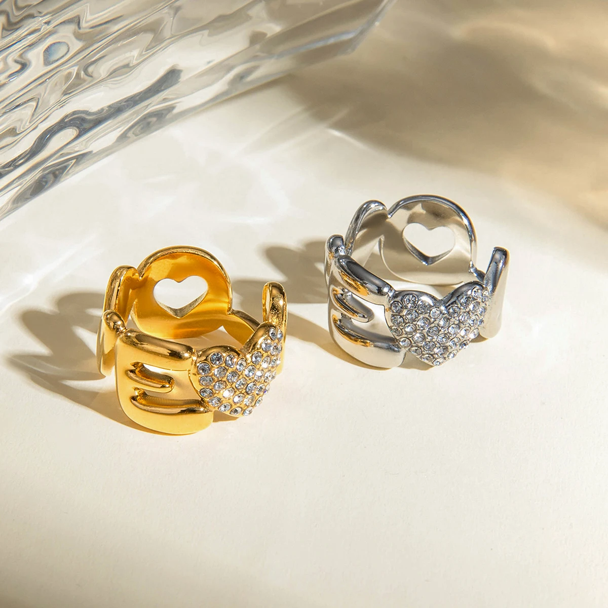 18K PVD gecoate lichte gezellige roestvrijstalen geometrische LOVE letter inleg met rhinestone gesloten ring dames premium sieraden