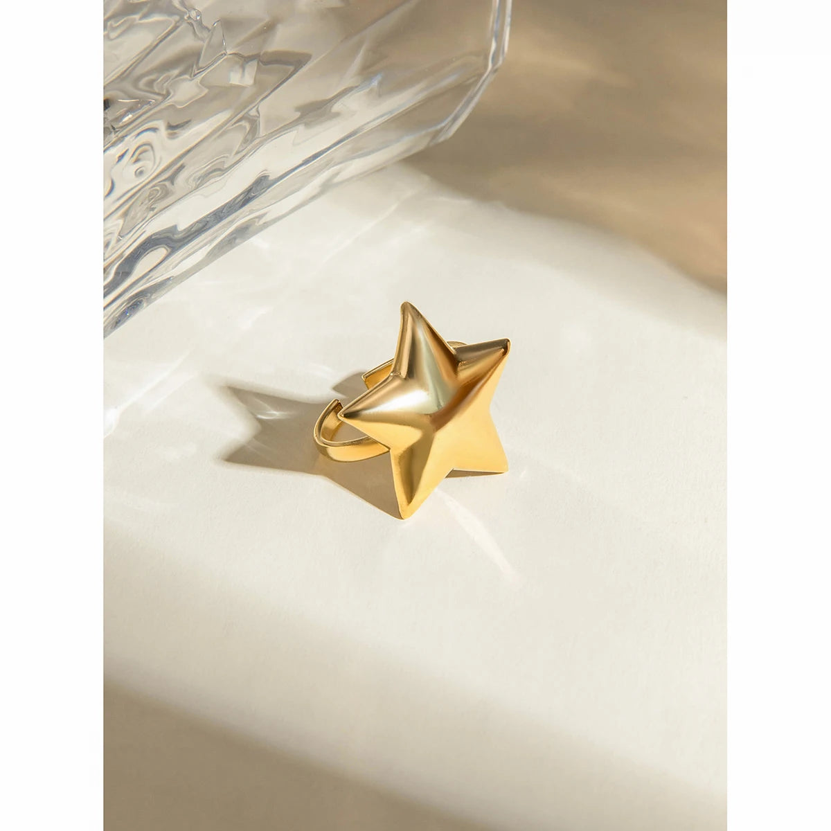 18K PVD gecoate lichte gezellige roestvrijstalen geometrische gladde convexe pentagram open ring trendy vrouwen premium statement sieraden