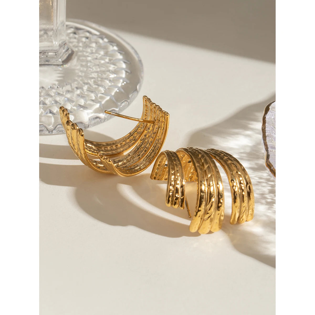 18K roestvrij staal onregelmatige vintage hamerslag gedraaide oorbellen waterdicht creatieve moderne sieraden vrouwen bijoux cadeau
