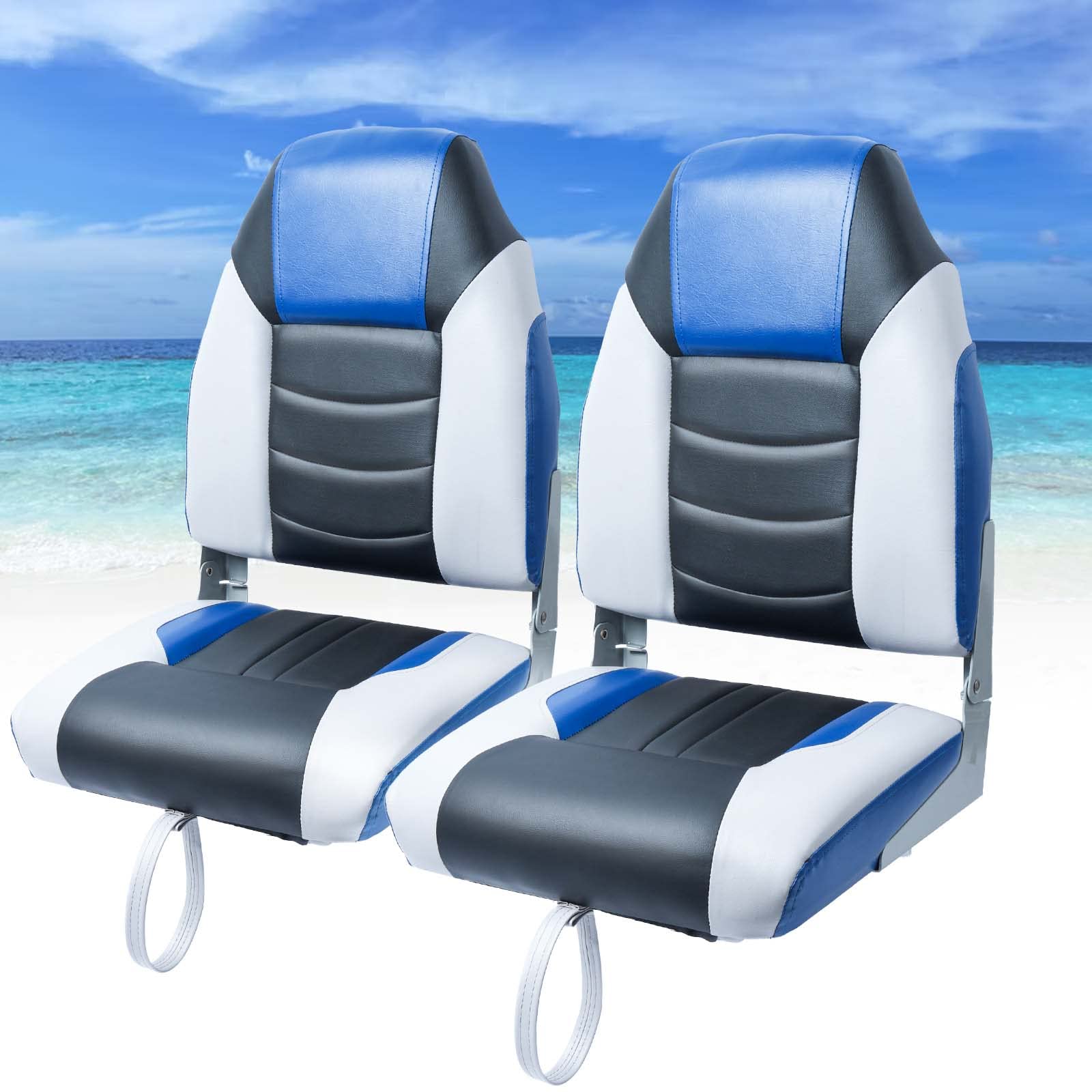 Dreizack Boat Seats 2 Packs, Folding High Back Fishing Waterproof Universal Pontoon Boat Seat Bass Tracker Boat Chairs with Stainless Steel Screws, Aluminum Hinges and Thickened Cushion