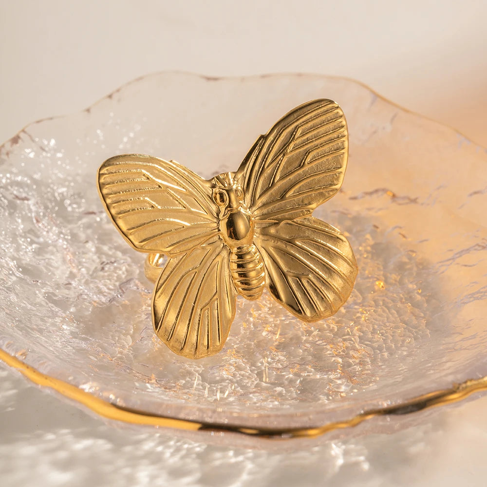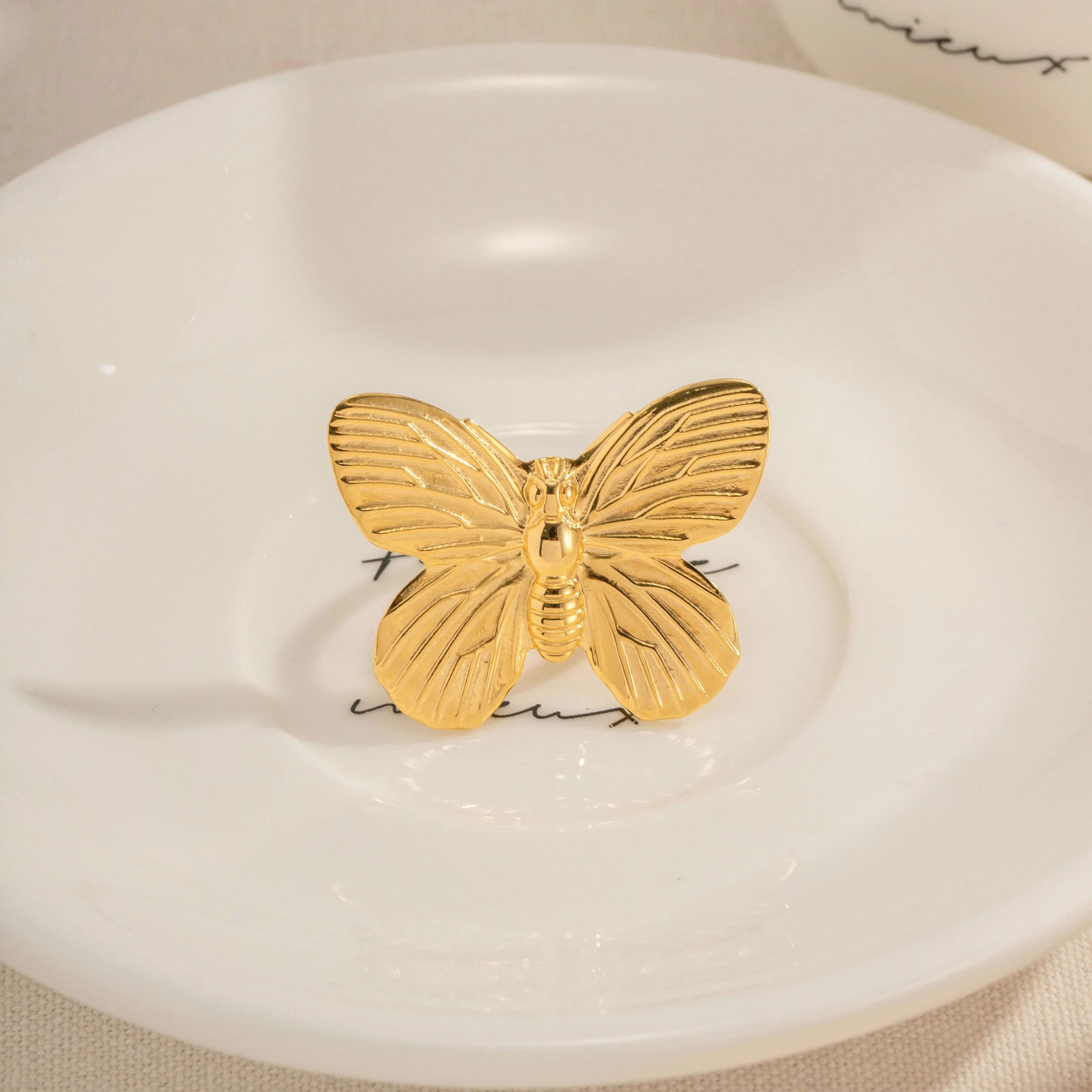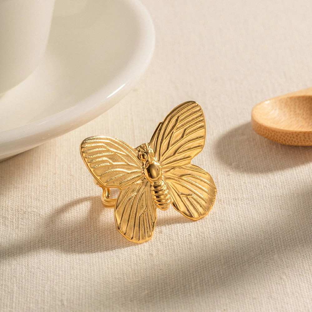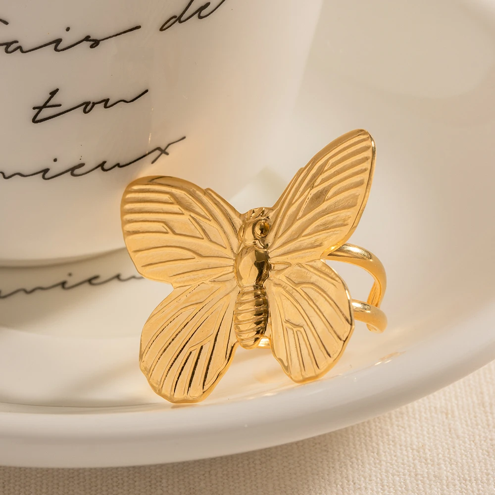 Overdreven roestvrijstalen vlinder open ring voor vrouwen vintage creatieve vlinder verstelbare sieraden cadeau femme bijoux