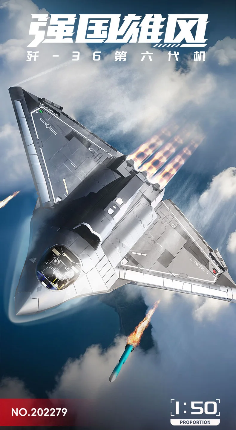 J-36 Carrier Based Fighter Jet Assemblage Building Blocks MOC Military Series Aircraft Plane Model Bricks Boys Toys Gifts