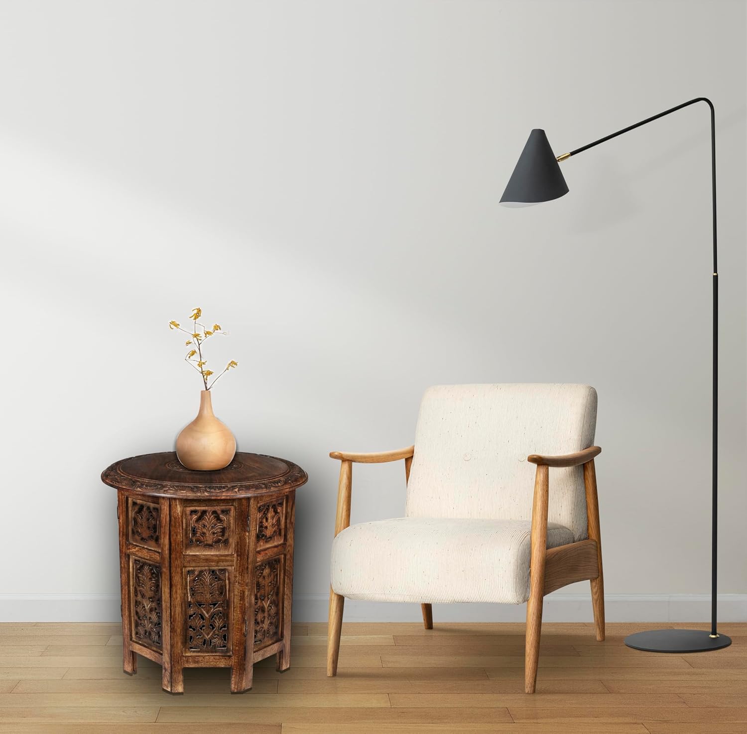 Lightnpro Handcrafted Wooden Round Accent Table - Vintage Farmhouse Octagonal Side End Table with Intricate Carvings for Living Room, Bedroom, Entryway - 18x18 Inch - Burnt