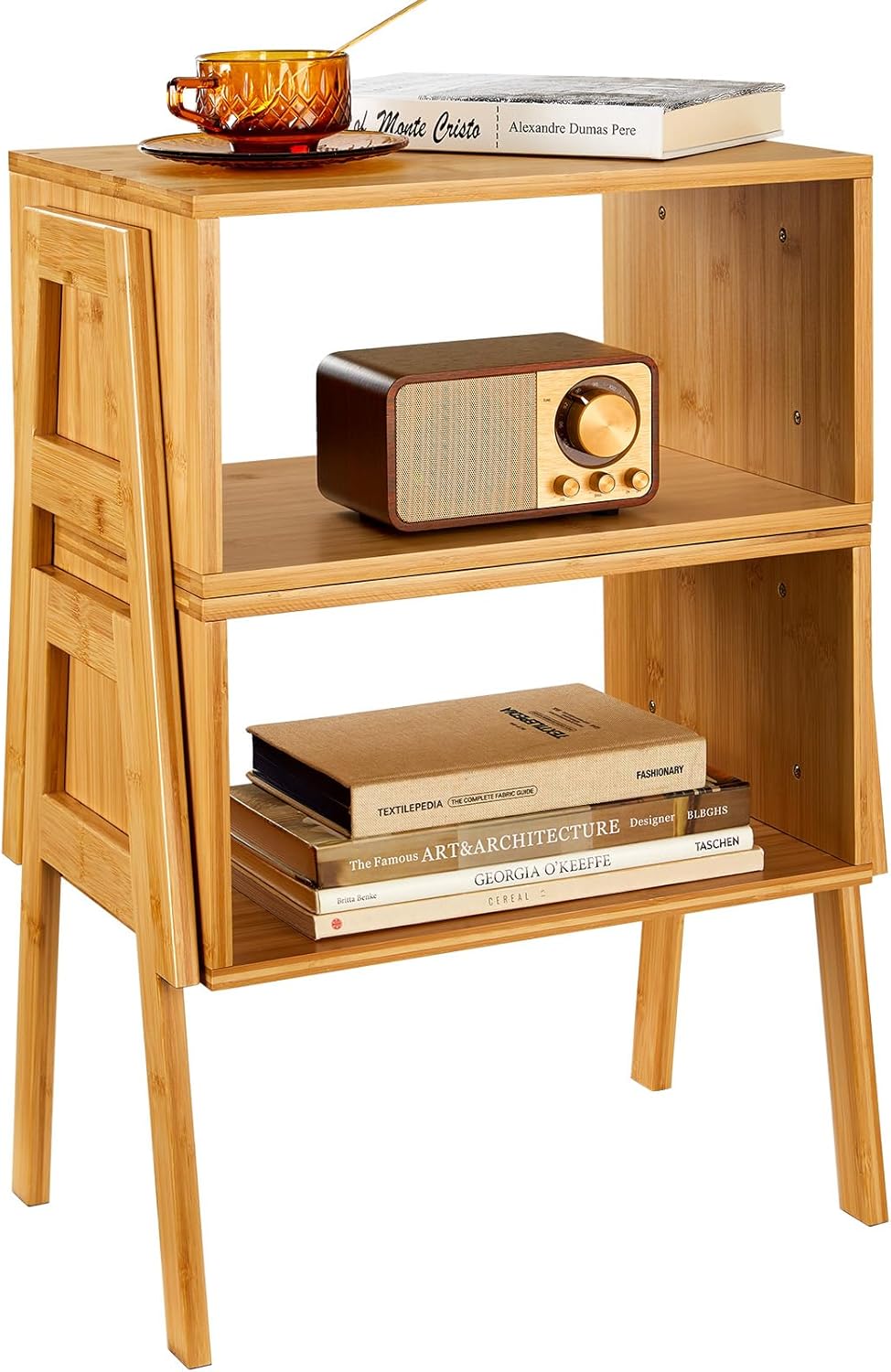Pipishell Bamboo Stackable End Tables, Wood Living Room Nightstand, Bedside Tables for Bedroom Storage, Set of 2