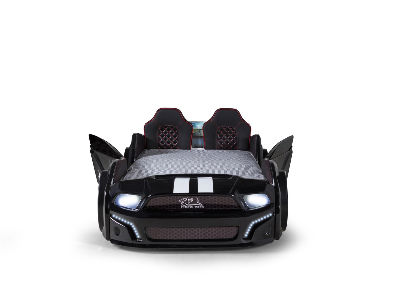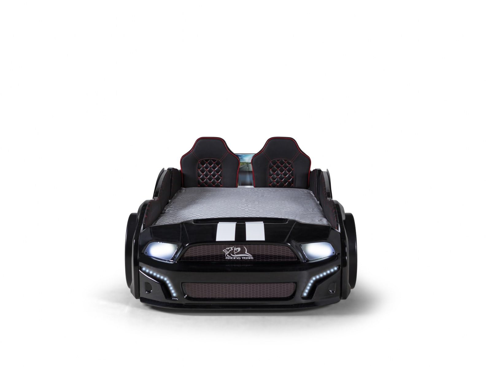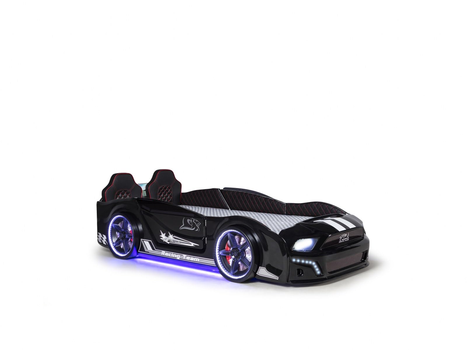 - ONTWERP: Slank zwart raceautobed met sportwagenstijl, aerodynamische carrosseriedelen en realistische race-details voor een authentieke uitstraling