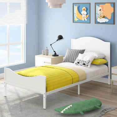 Timy Kids tweepersoonsbedframe met houten hoofdeinde en voeteneinde, metalen platformbedframe voor jongens meisjes tieners volwassenen, modern kinderbedmeubilair, geen boxspring nodig, wit