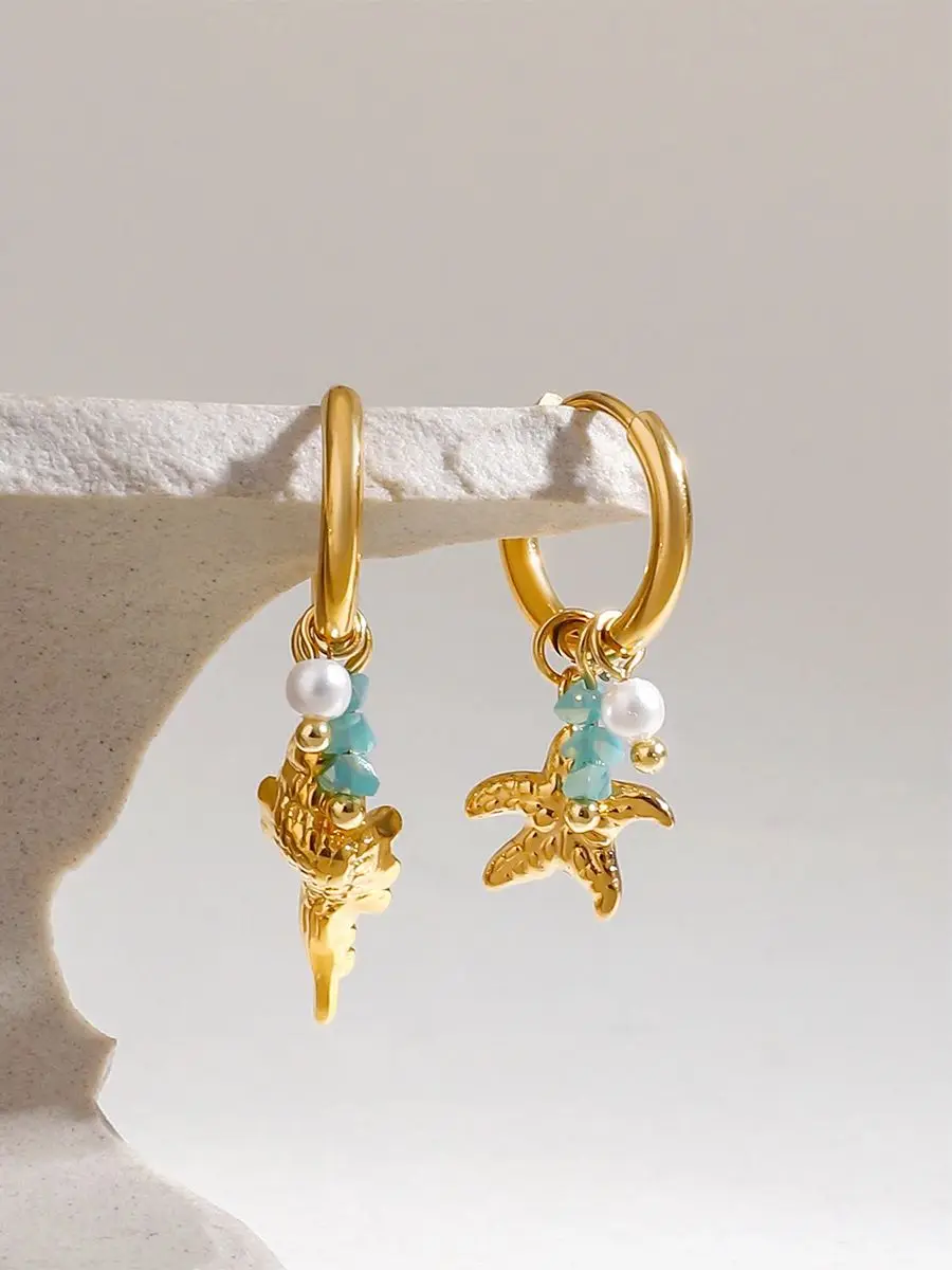 Zora Ocean Style Charm Drop Earrings – Goudgeplateerd roestvrij staal
