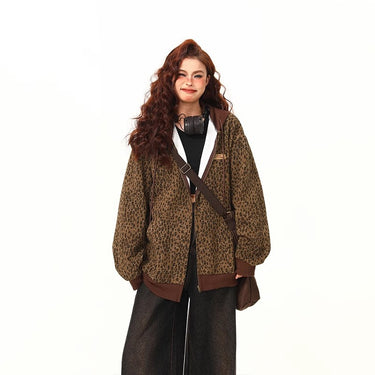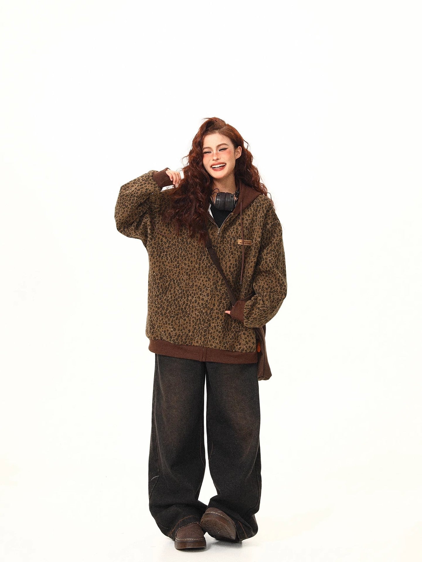 Retro Hooded Zipper Leopard Print Men's And Women's Jacket
