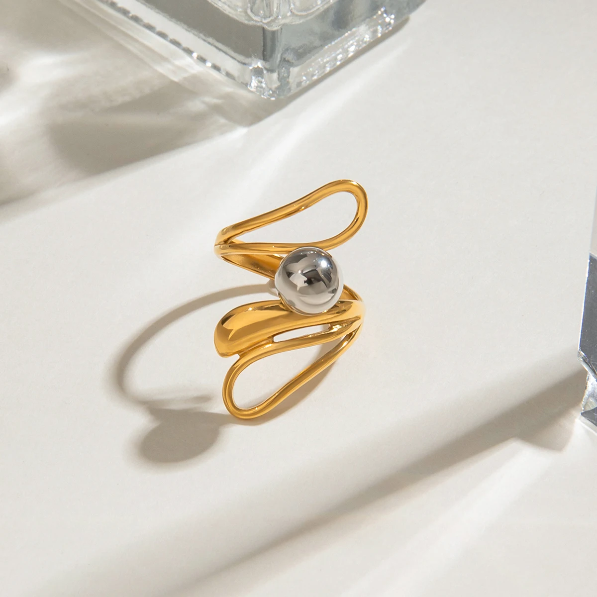 Złoty Srebrny Kolor Dopasowanie Nieregularny Pusty Stalowy Pierścionek Kulkowy 18K PVD Powlekany Damska Biżuteria Codzienna Antyalergiczna Metalowa Zawieszka