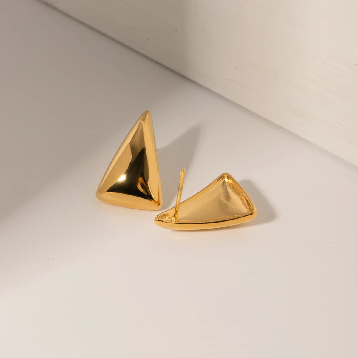 Złote modne kolczyki w kształcie trójkątnych ćwieków ze stali nierdzewnej o gładkiej, metalicznej fakturze dla kobiet, biżuteria wysokiej jakości odporna na matowienie