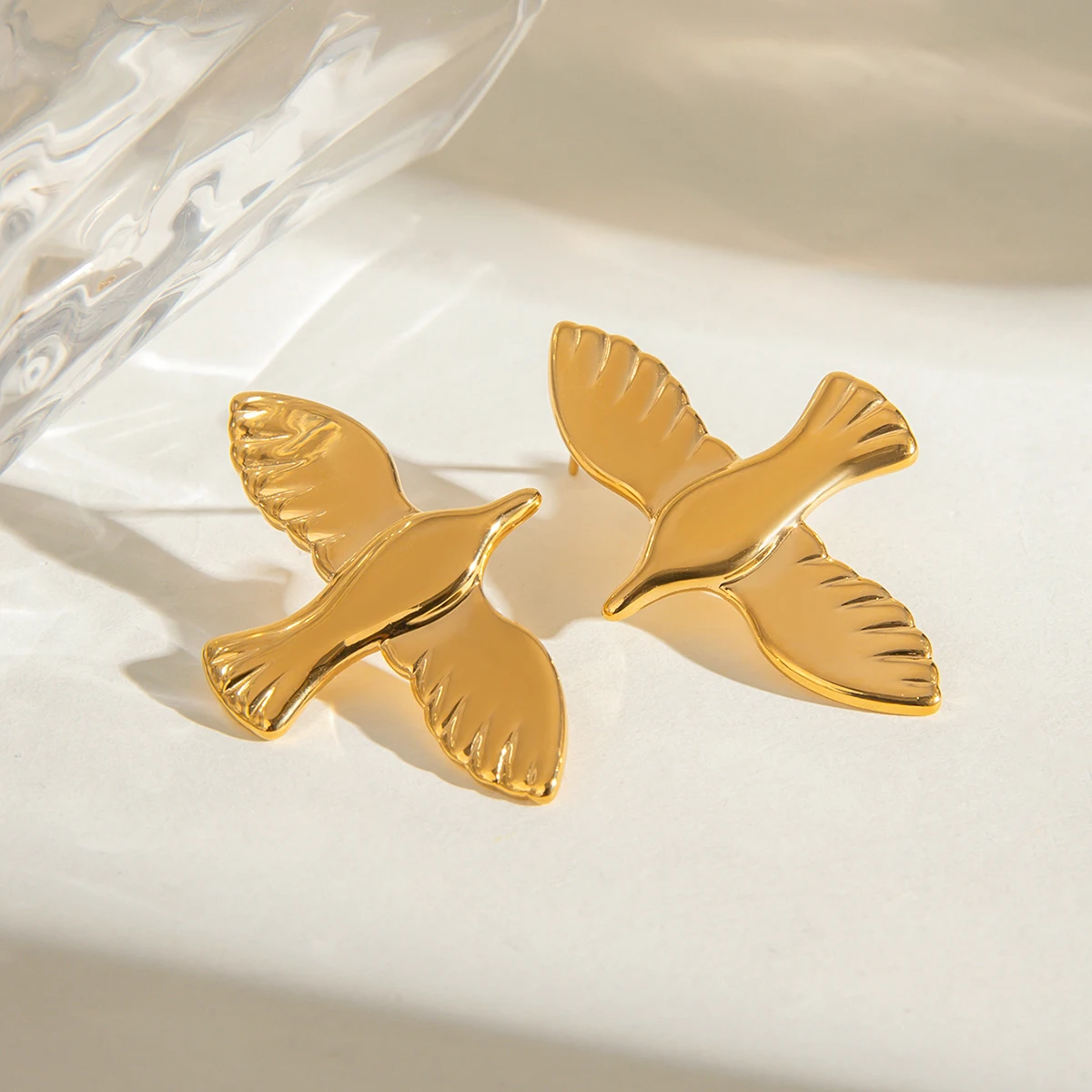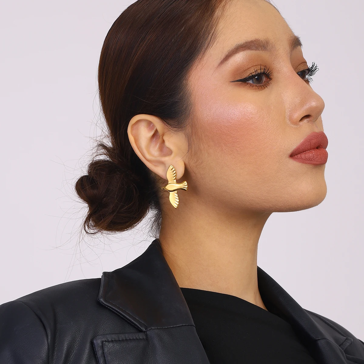 Kolczyki damskie w kształcie gołębia pokoju ze stali nierdzewnej 18K, stylowe, gładkie, modne, urokliwe, szykowne, efektowne, biżuteria, prezent na galę