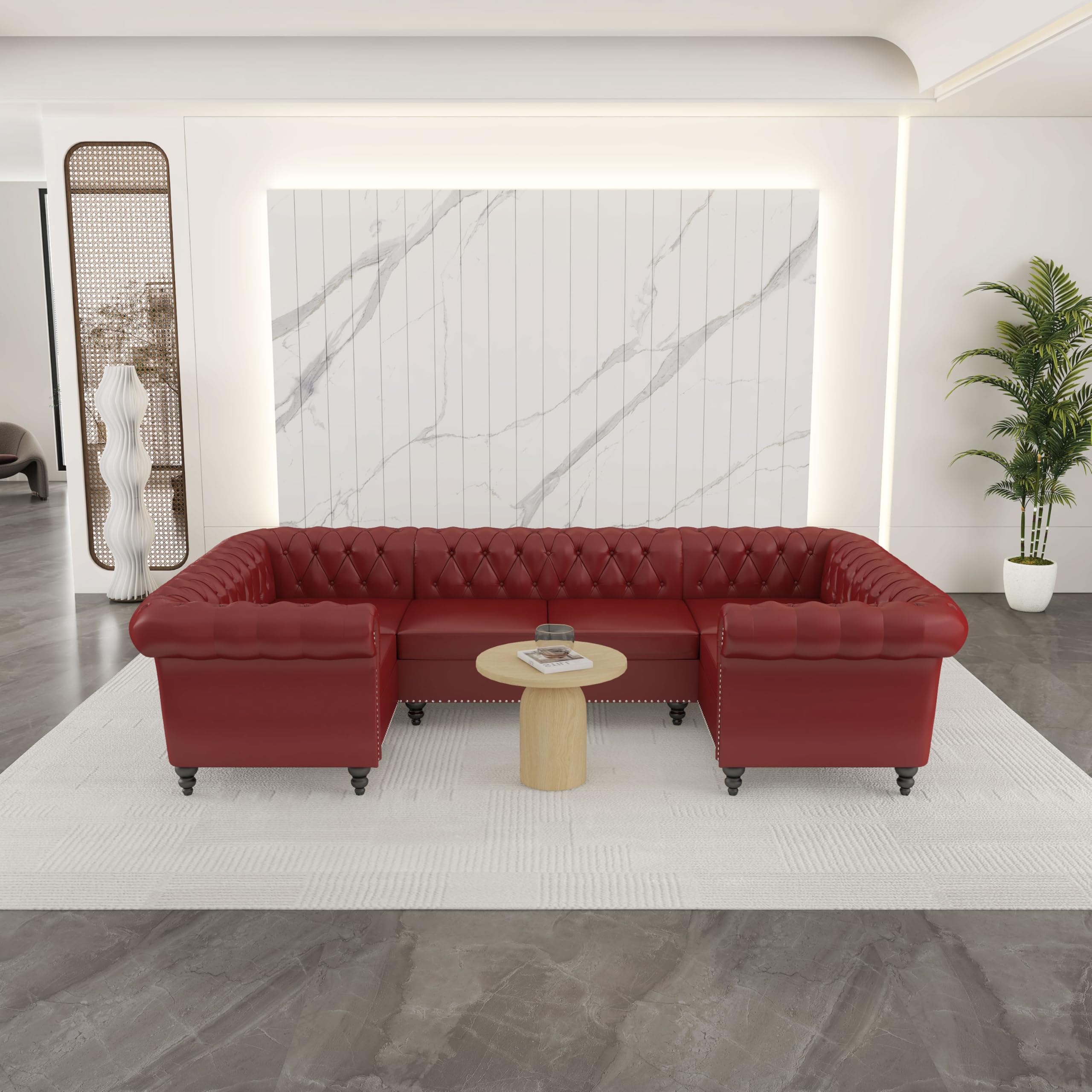 AVZEAR 3 Pieces Sectional U-Shaped Sofa, Leather Modular Sectional Couches Chesterfield Sofa Set, Modern Living Room Furniture Sets Upholstered Couch Set for Living Room, Office and Apartment, Black