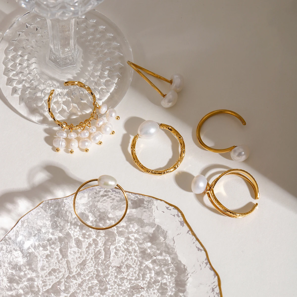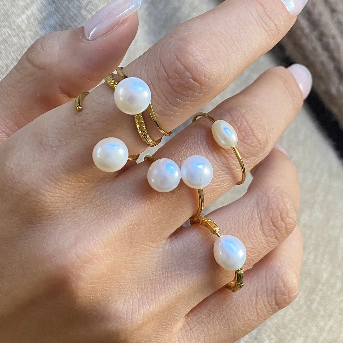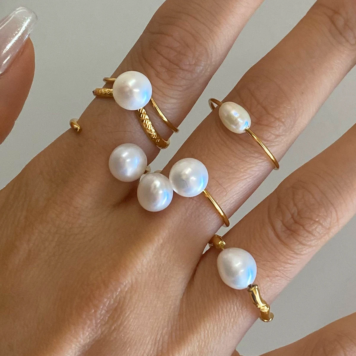Minimalistyczny pierścionek dla kobiet z podwójną warstwą, pusty, z perłą słodkowodną, otwierany, ze stali nierdzewnej pozłacanej 18-karatowym złotem, biżuteria antyalergiczna z urokiem