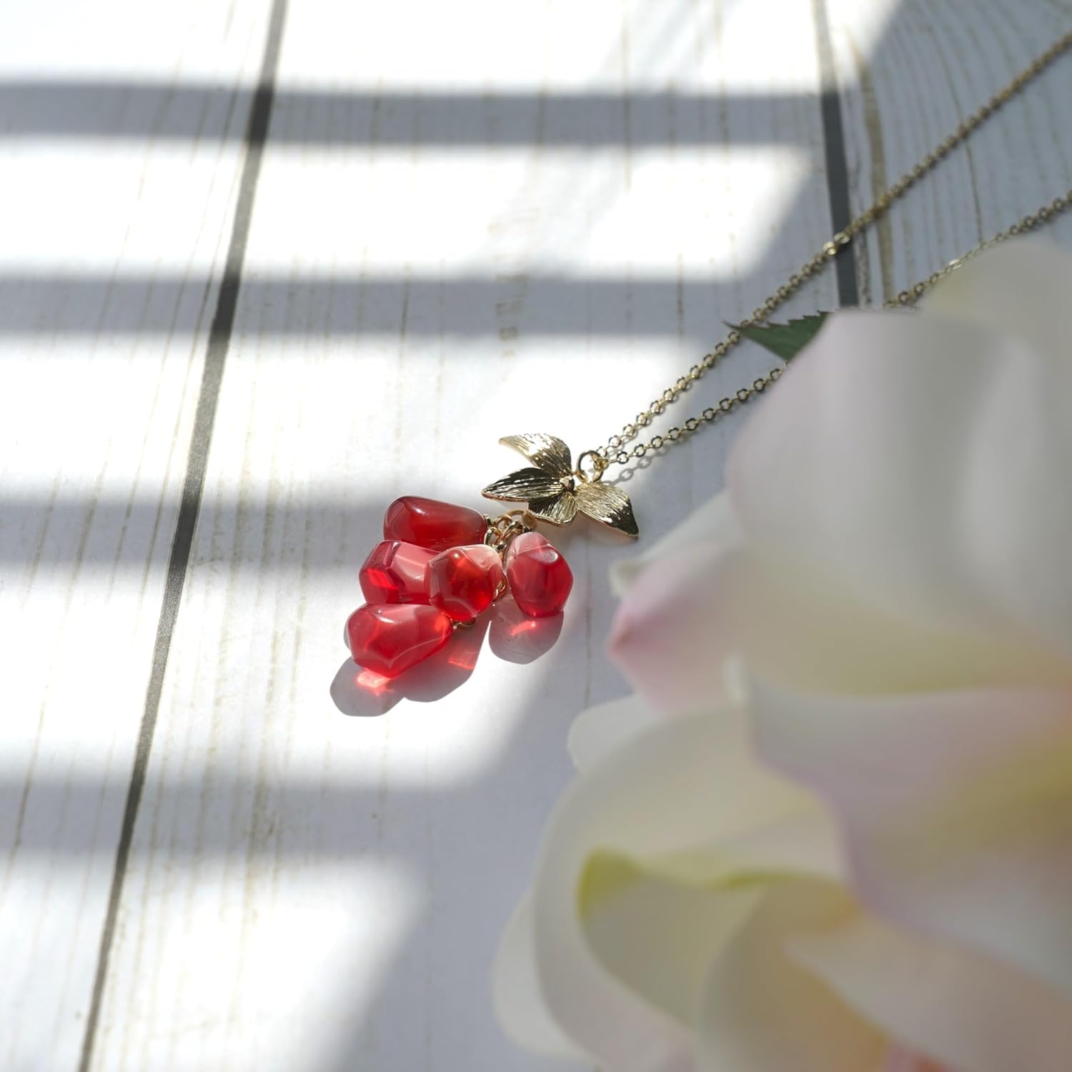 RainDesigns Custom Pomegranate Seed Necklace Make Your Own Gold Leaf Pomegranate Seed Fruit Necklace Handmade Personalized 14K Gold Plated DIY Gift For Women Girl