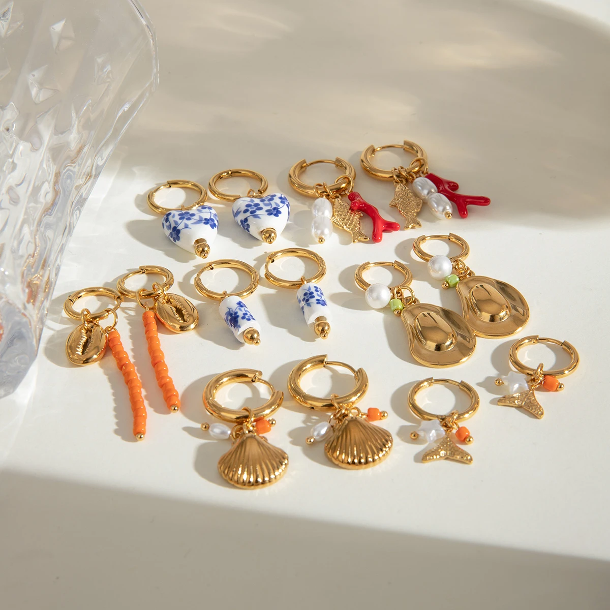Stylowe kolczyki koła z zawieszką w różnych kształtach, proste, ze stali nierdzewnej pozłacane 18K złotem, damskie, wodoodporne, szykowne biżuteria