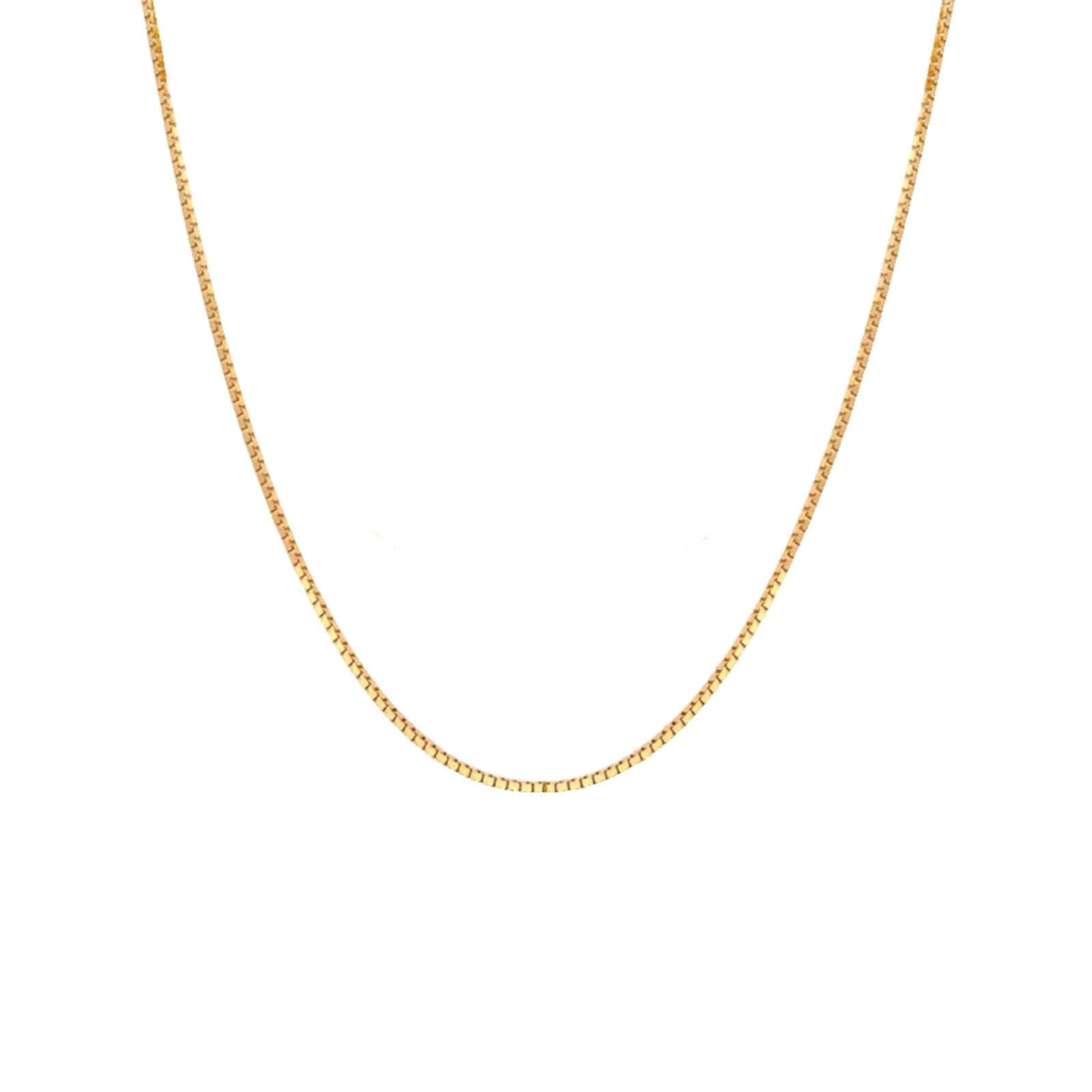 VOGREX 14K Real Solid Yellow Gold 0.7mm Box Chain Necklace with Lobster Clasp for Men and Women -16"