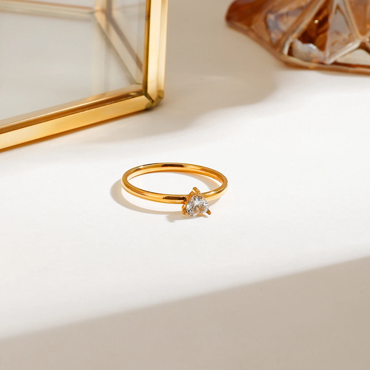Zora 3-częściowy zestaw regulowanych pierścionków do układania w stos, pozłacany 18K złotem, ze stali nierdzewnej, pierścionek z sercem i cyrkonią, luksusowy prezent, biżuteria dla kobiet
