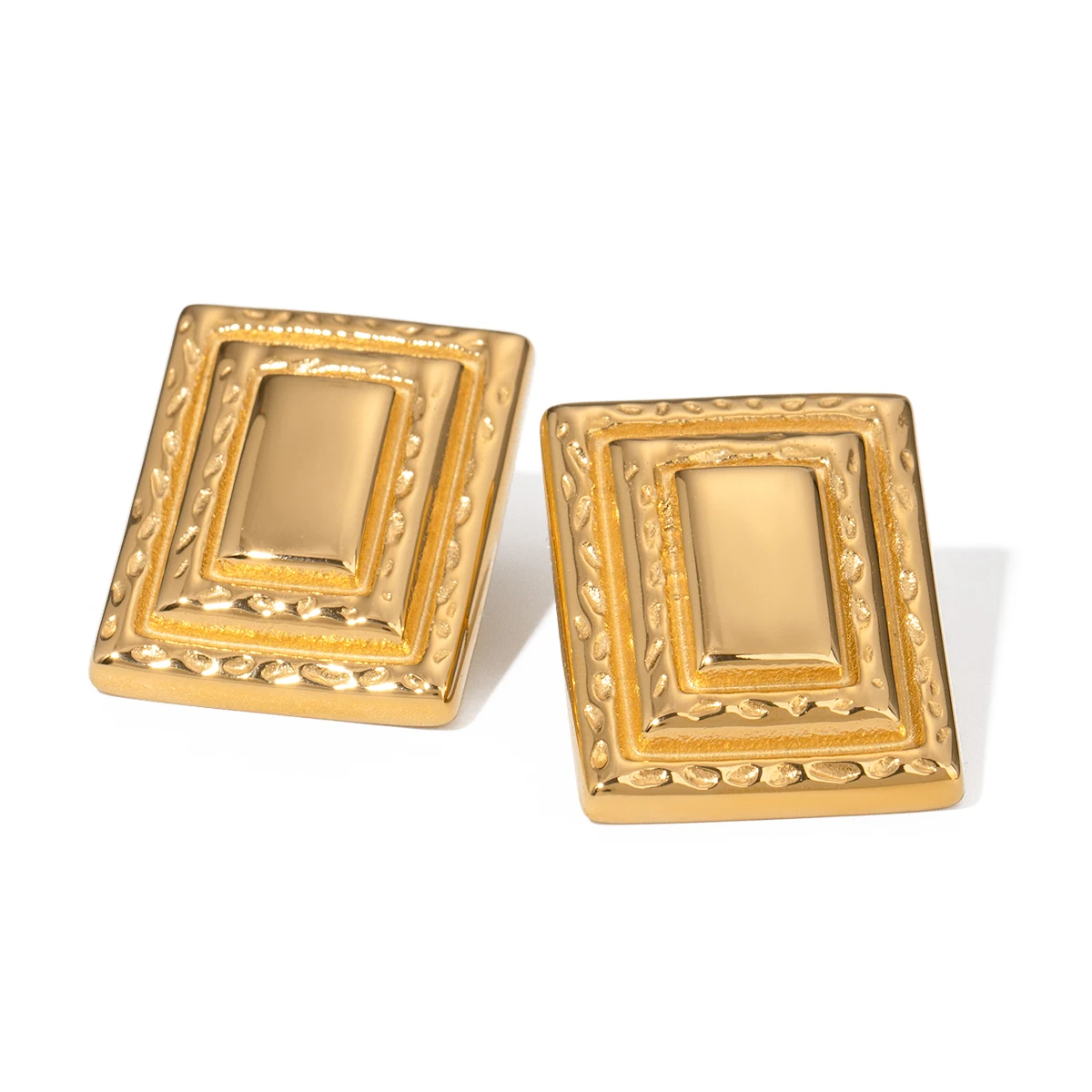 18K PVD Plated Fashion Vintage Rectangle Triple Layered Earrings Stainless Steel Women Prevent Allergy Trendy Daily Jewelry