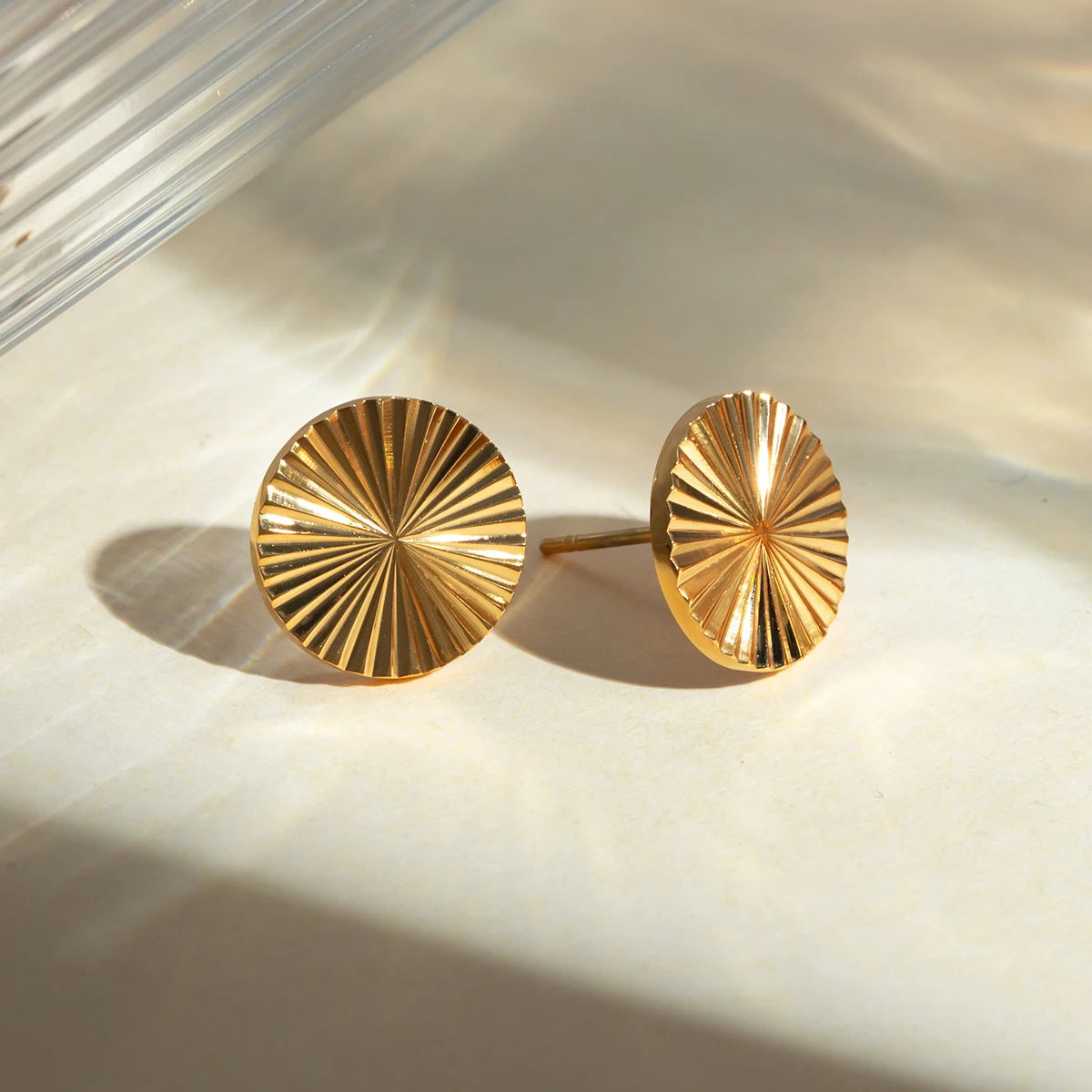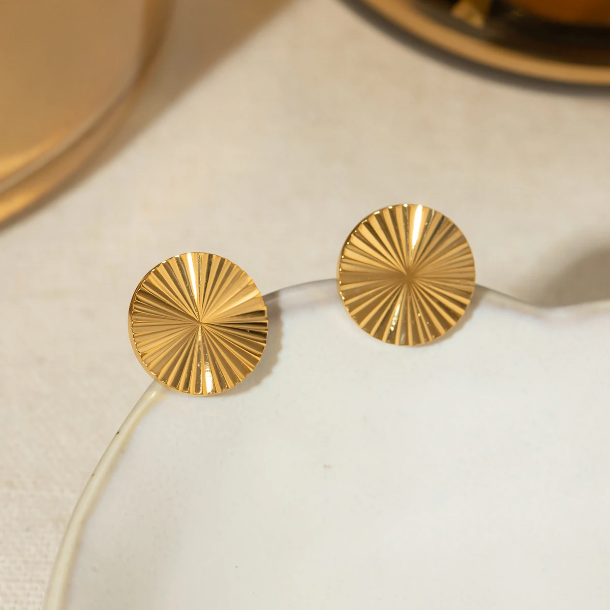 18K PVD Plated Stainless Steel Round Sun Shaped Stud Earrings – Waterproof & Exquisite Jewelry