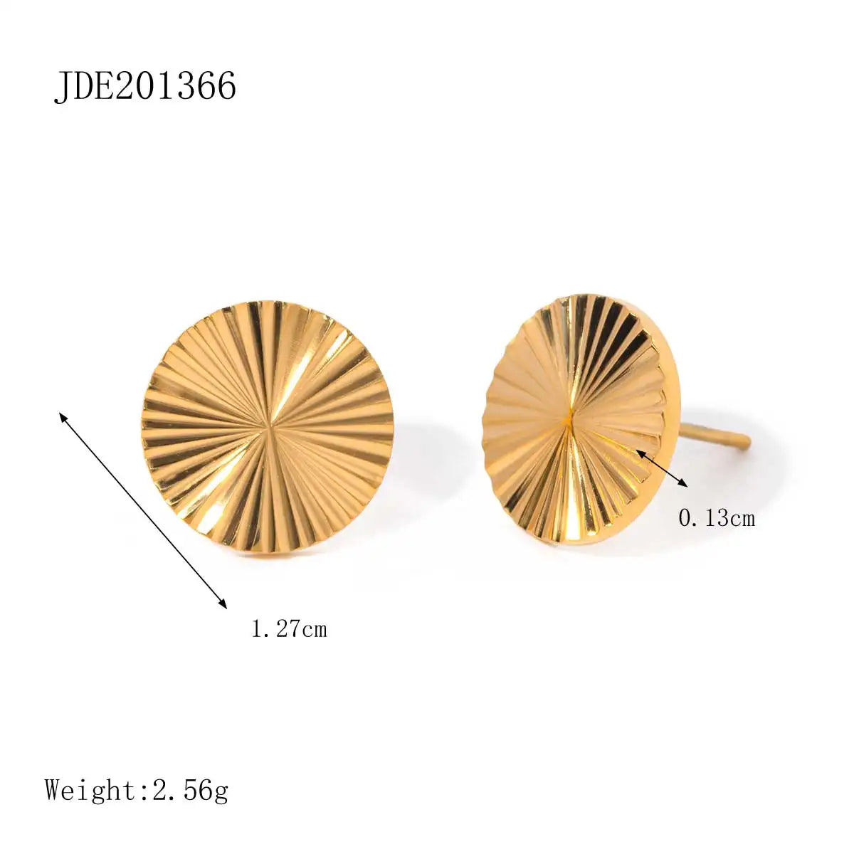 18K PVD Plated Stainless Steel Round Sun Shaped Stud Earrings High Quality Geometric Waterproof Women Exquisite Jewelry Gift