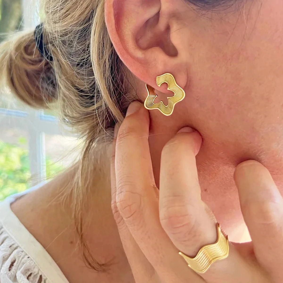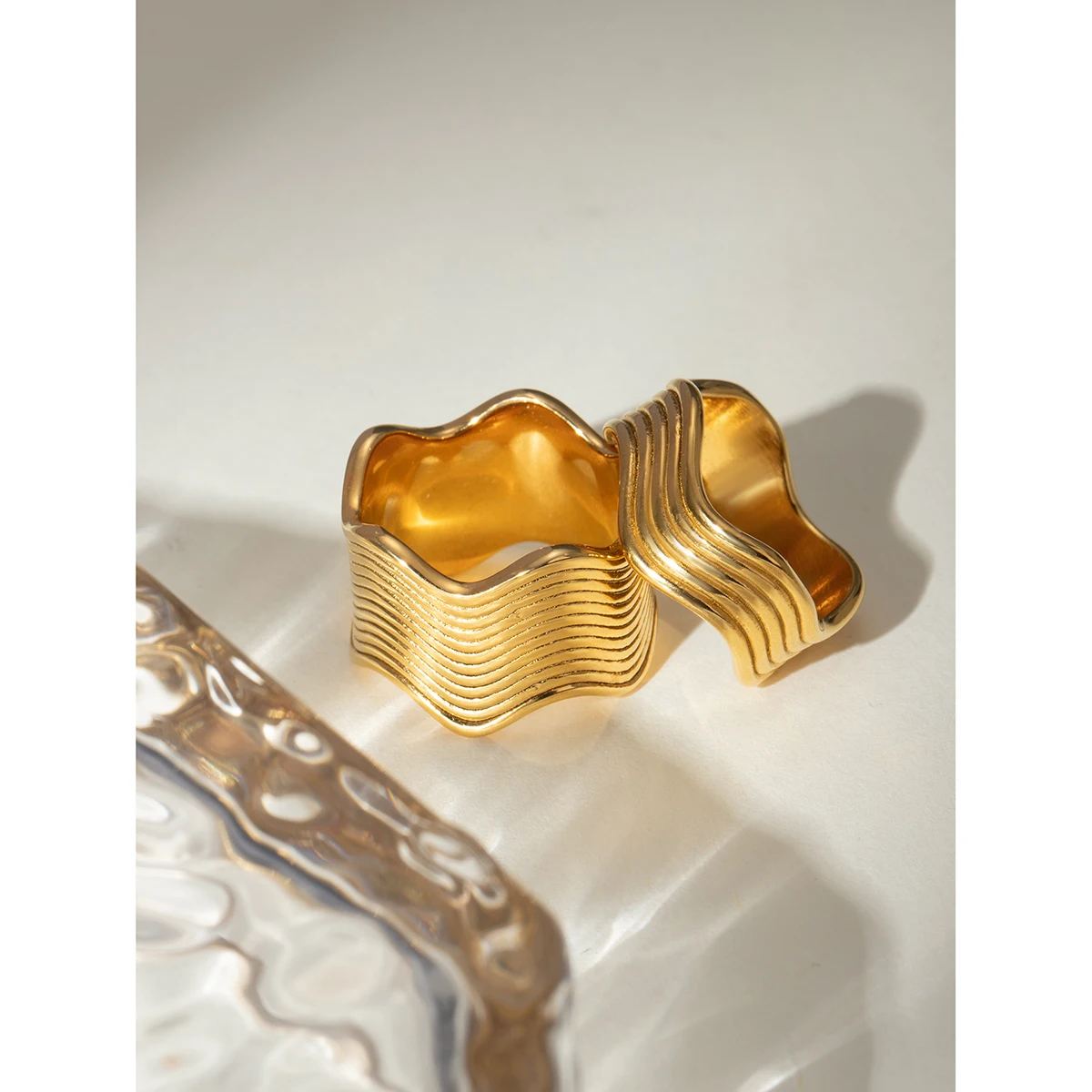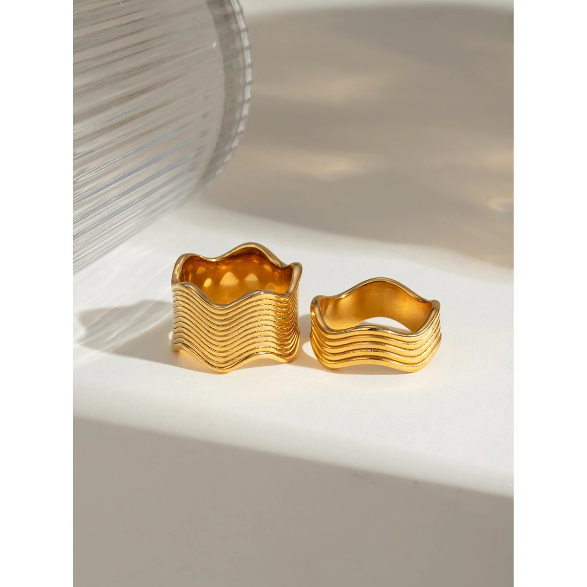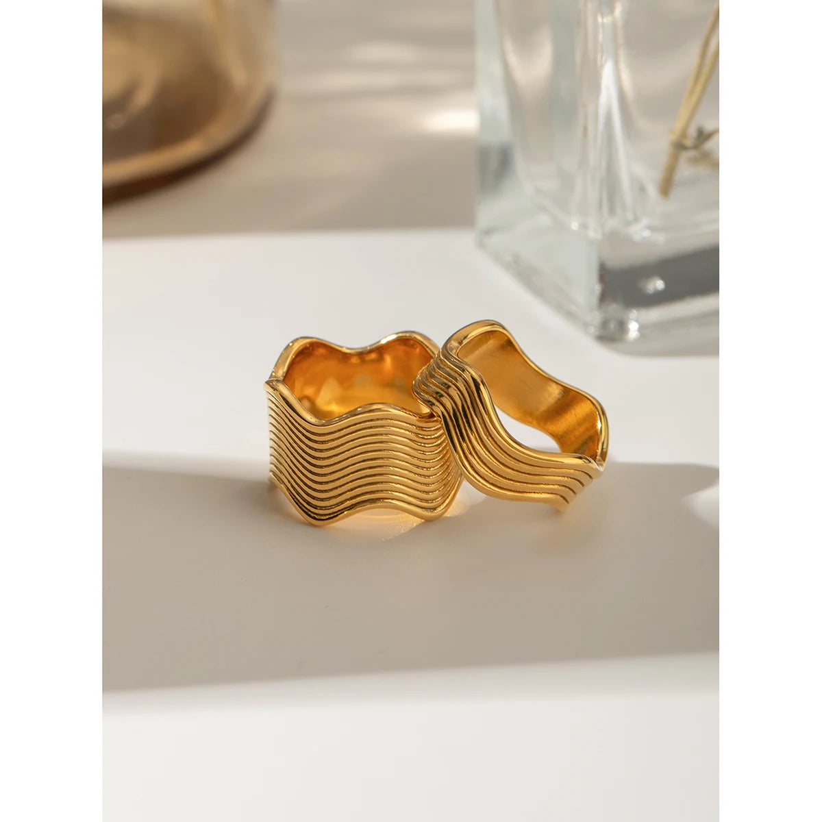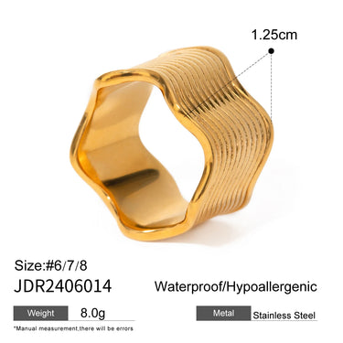 18K PVD Plated Vintage Fashion Minimalist Wave Line Closed Ring Stainless Steel Women Prevent Allergy Metal Stylish Jewelry