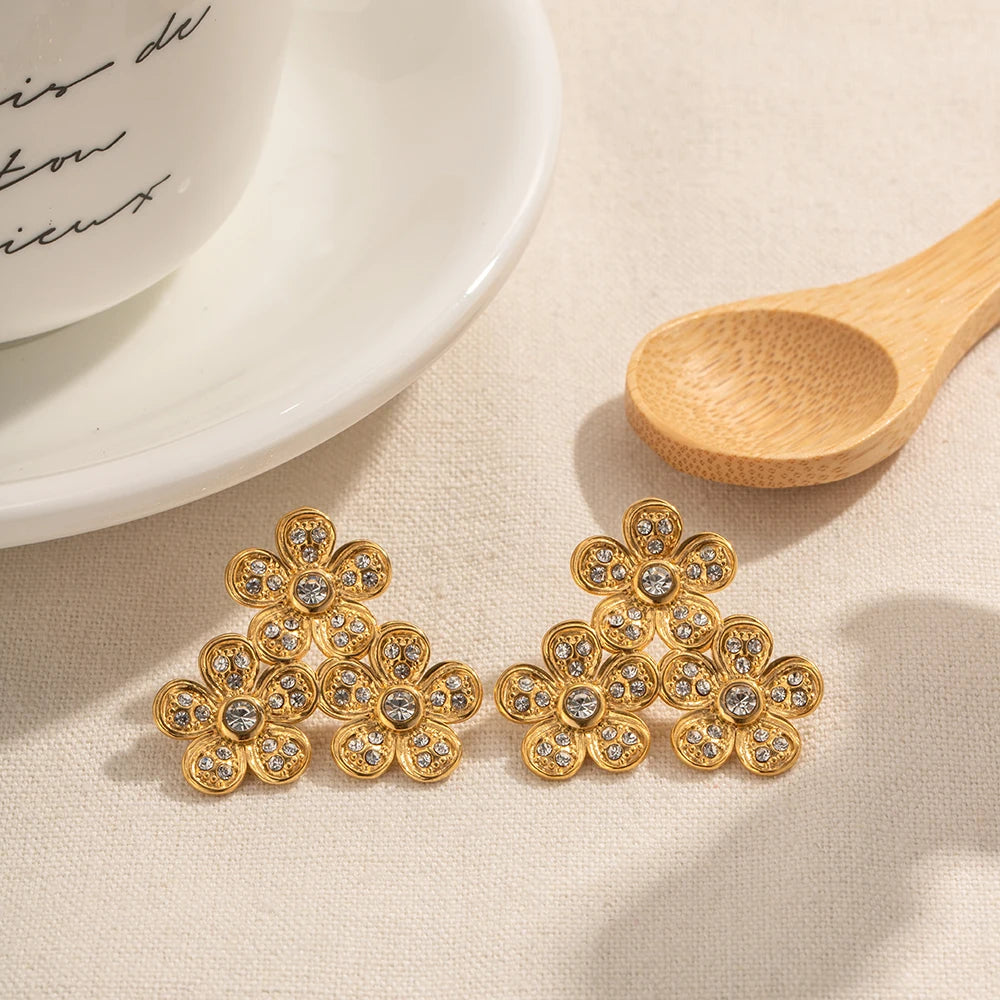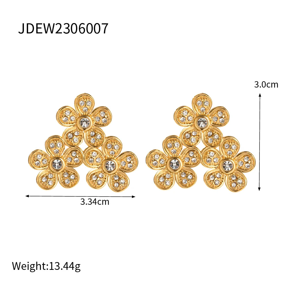 2023 Vintage Tarnishproof Lady Earring 18K Gold Plated Stainless Steel Large Floral Pattern Design Delicate Vintage Jewelry Gift