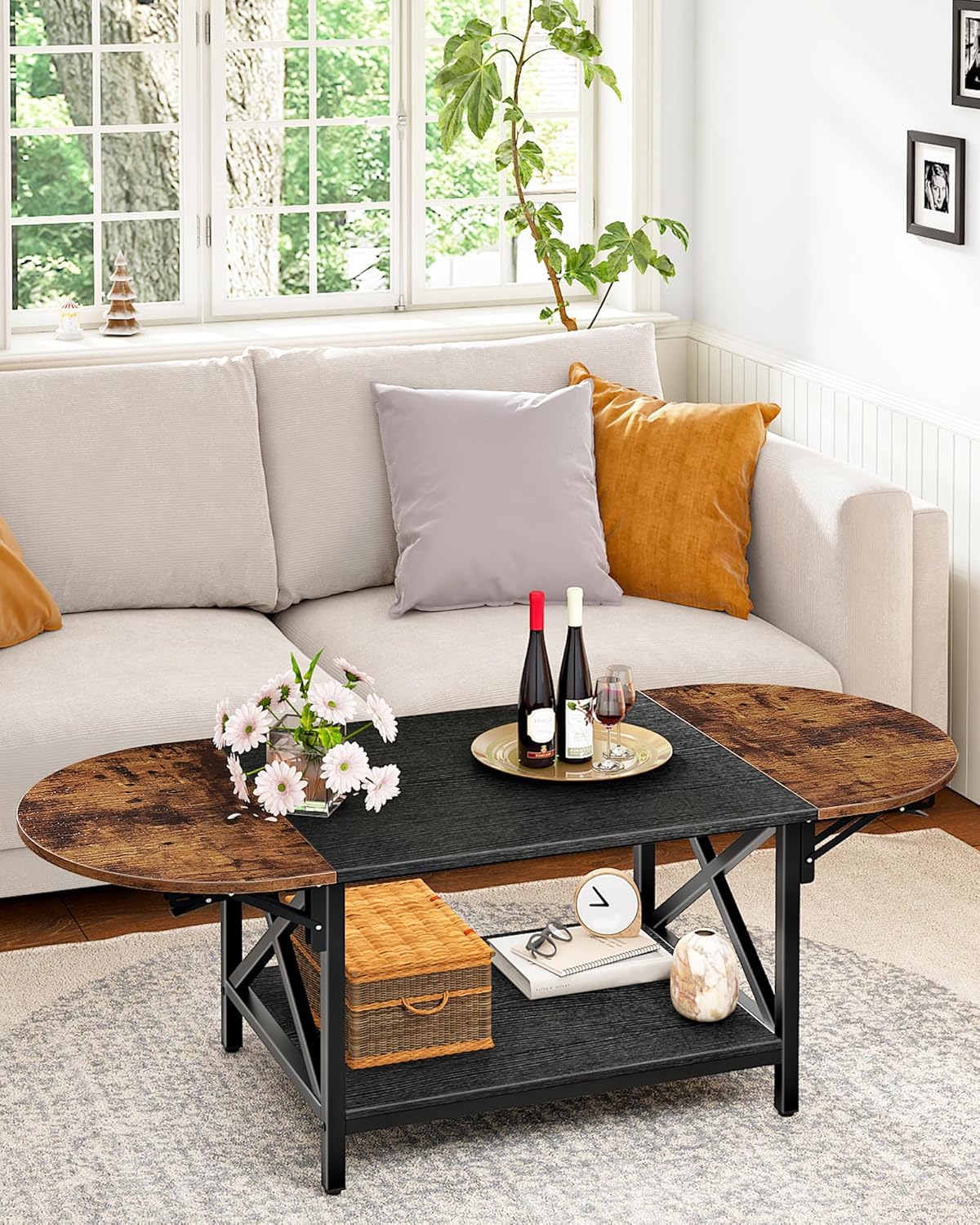 - Multifunctional Folding Table: The coffee table has 2 drop leaves to easily adjust the size of the table as needed. When fully extended, it expands up to 47.2" wide to seat up extra guests. When folded, it serves a side table, fitting neatly in tight corners