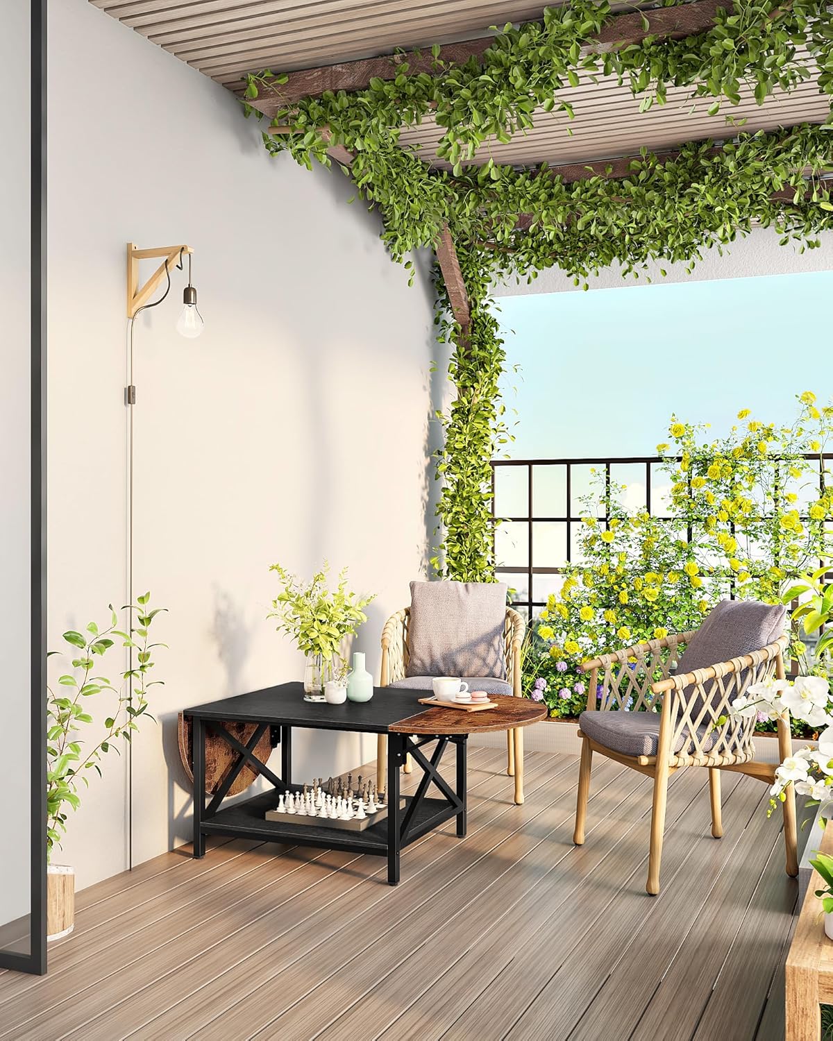 - Two-Tier Storage: The rustic brown coffee table with an expandable top offers extra space. The separate shelf underneath provides convenient storage for magazines, tablets, etc., helping you keep your home space tidy and organized