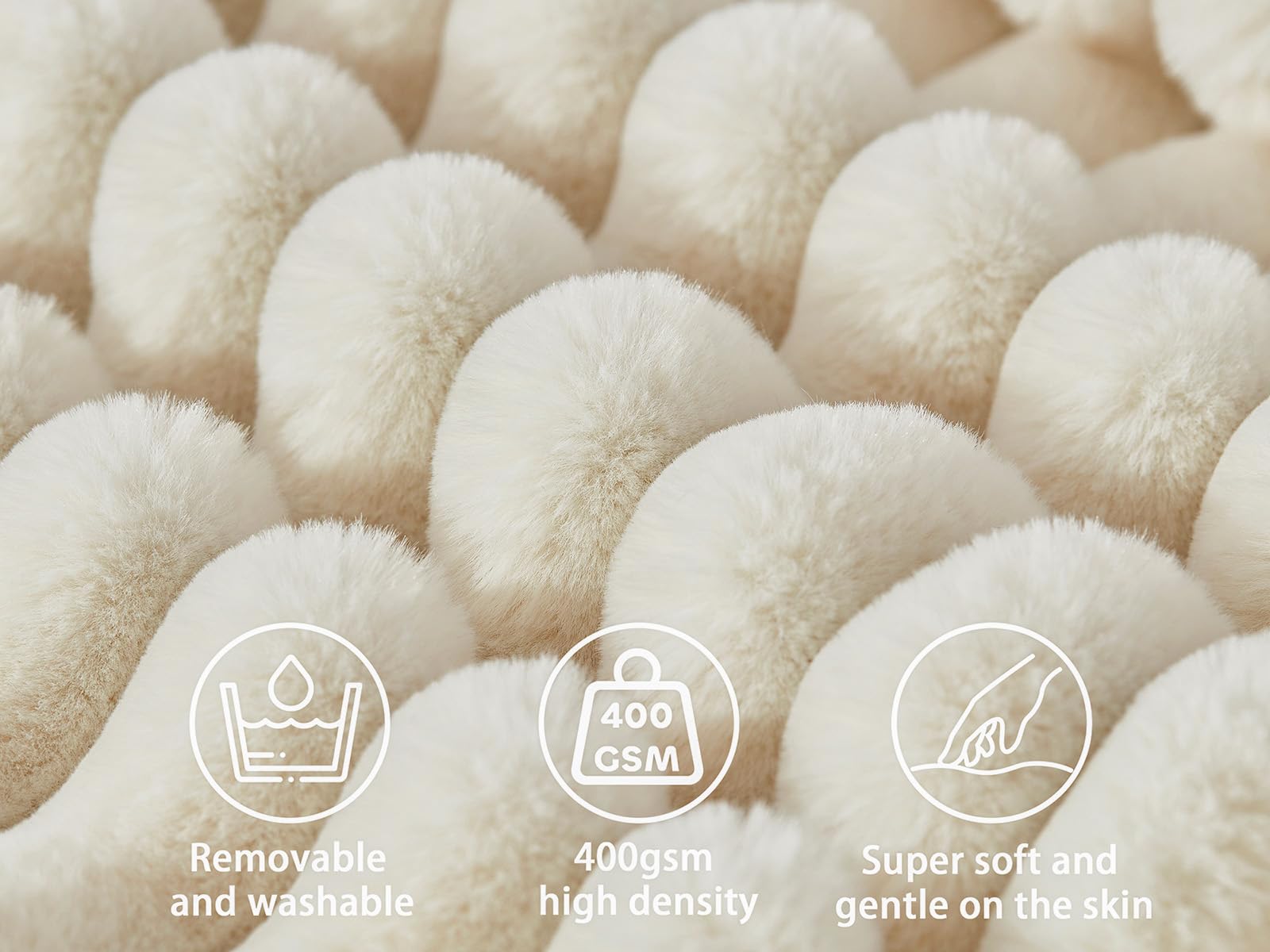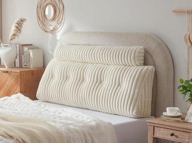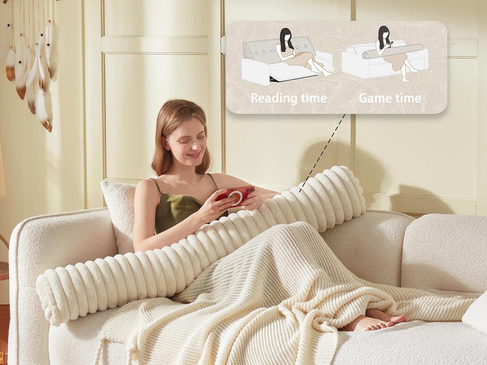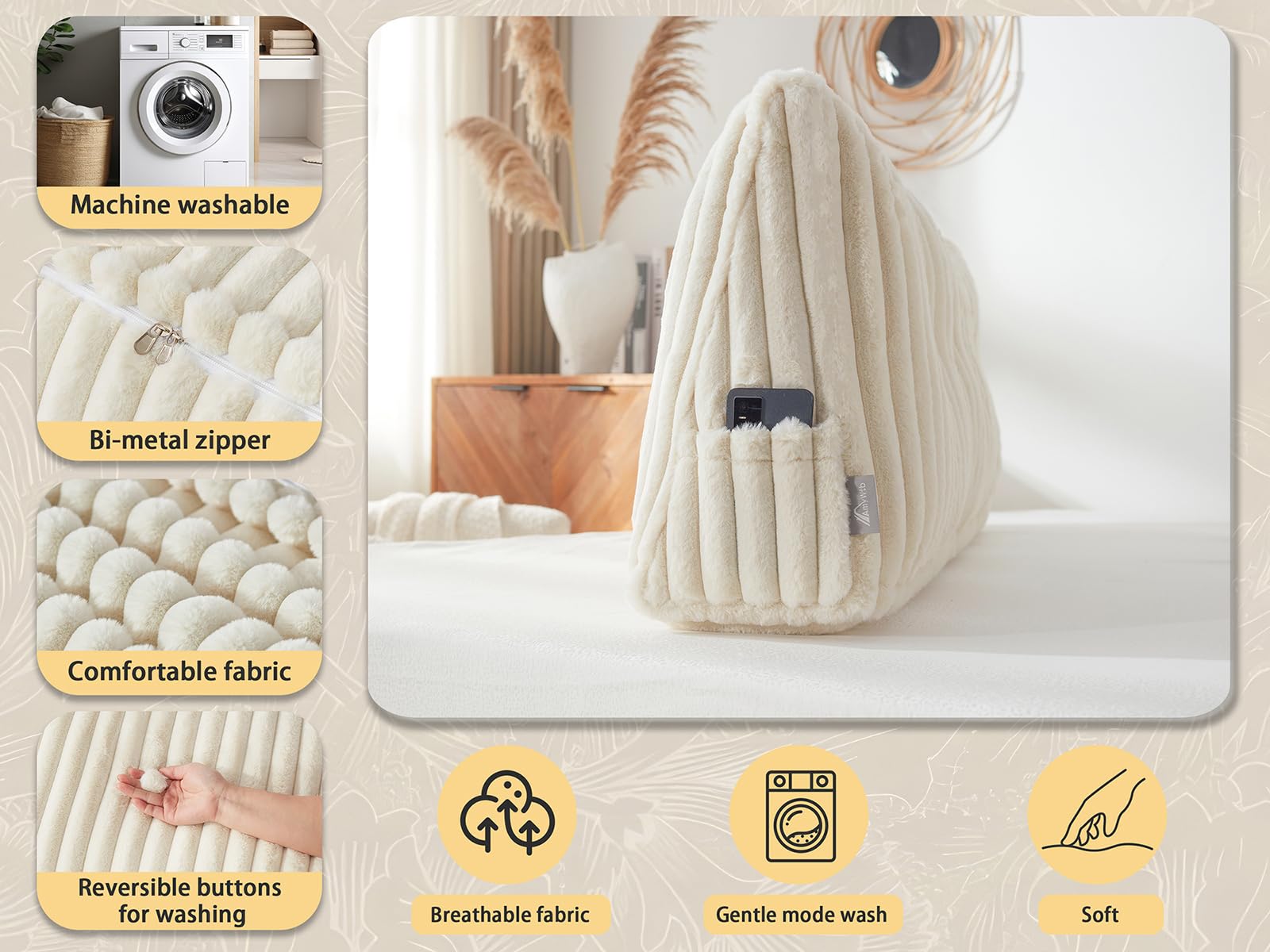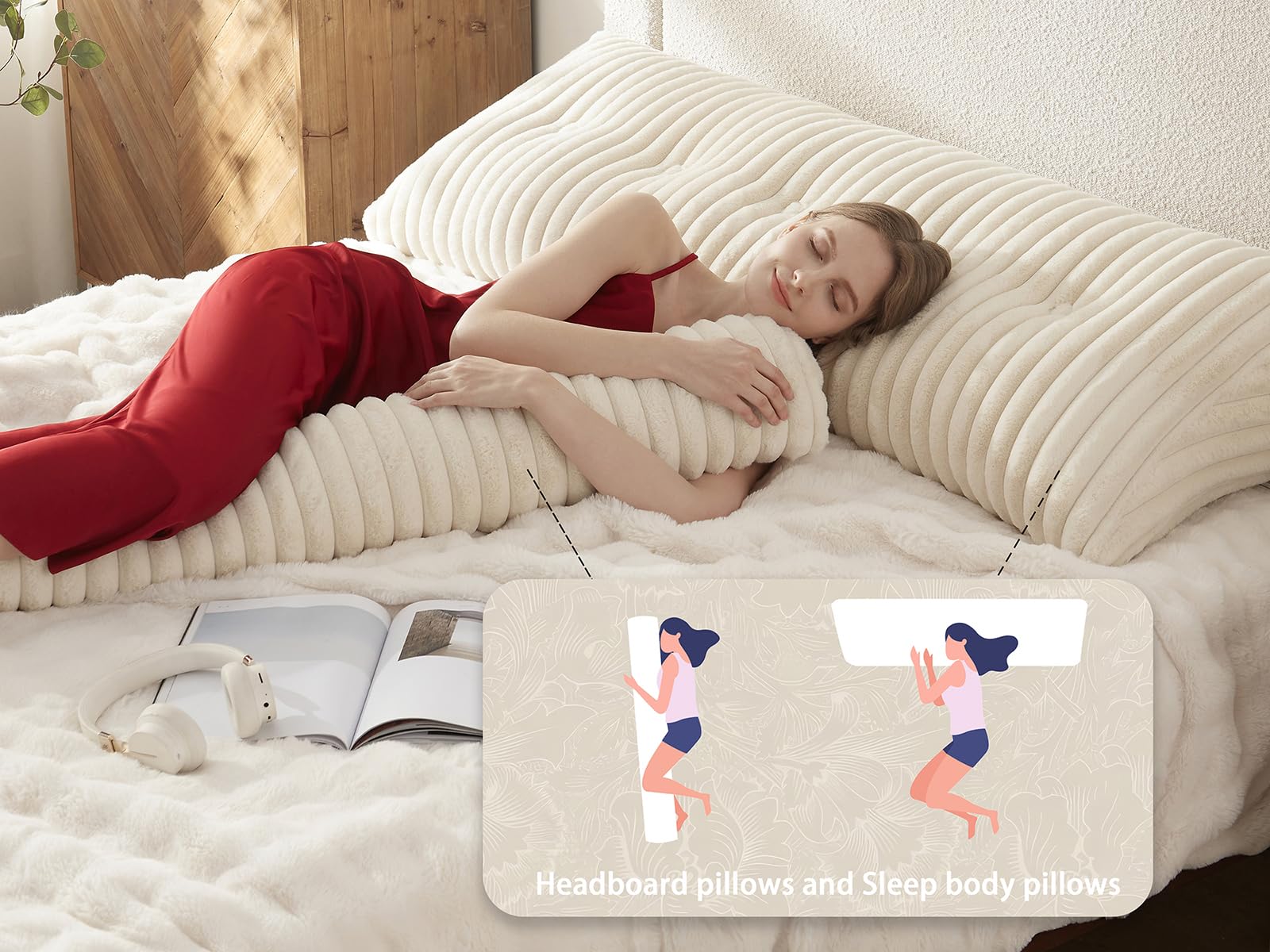 AmyWtb Headboard Pillow + A Long Neck Roll Pillow Body Pillow,Faux Fur Headboard Wedge Pillow with Removable Cover (Beige, Queen:59x8x20 inches)
