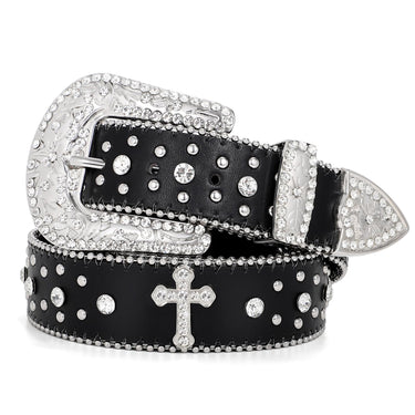 BELTROAD Rhinestone Belt for Men Women, Western Cowboy Cowgirl Belts Bling Leather Belt With Cross and Diamond for Jeans