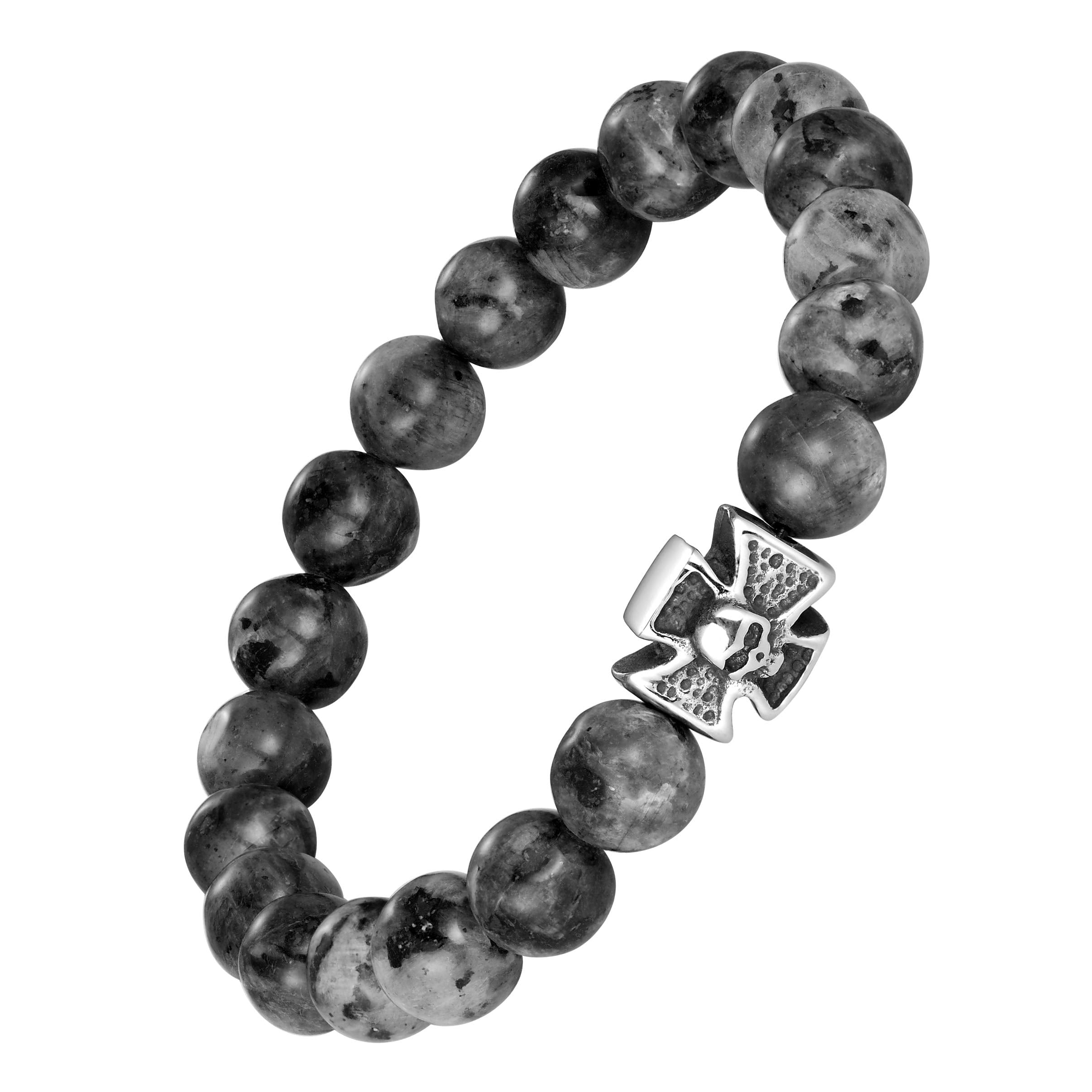 Bold Men’s Biker Bracelet – Skull, Wolf, and Foxtail Chain Designs in Polished Silver & Black Genuine Leather – Rust & Discoloration Resistant Stainless Steel – Jewelry Gift or Accessory for Men