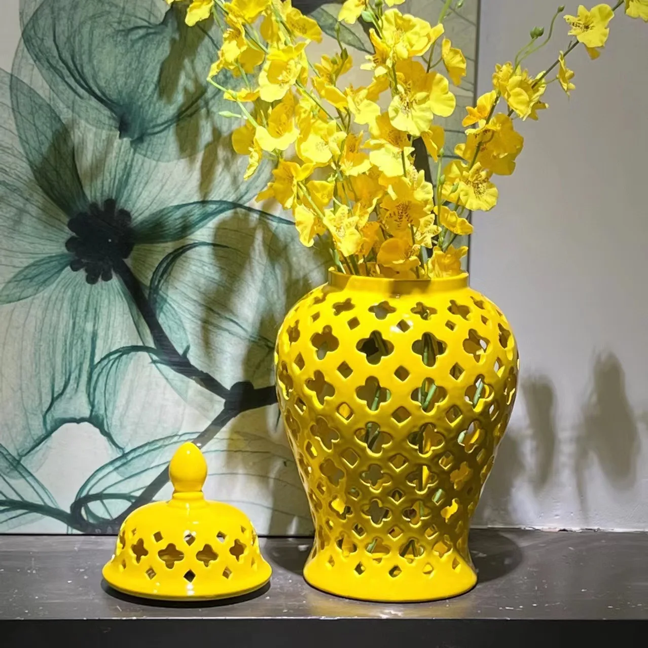 Ceramic Checkmate Jar Hollow Ginger Jar Porcelain Craftwork Vintage Bottle Storage Tank Vase Home Decoration Accessories