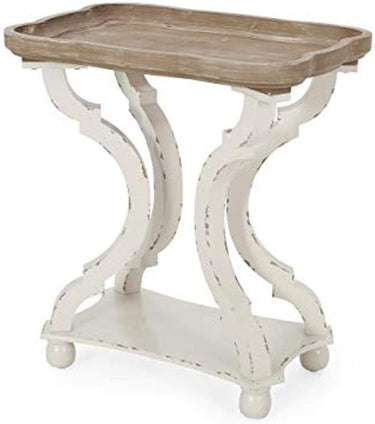 Add a dash of quaint refinement to your living room arrangement with an accessory of incredible charm. Featuring a soothing French country look, this accent table brings a lovely country touch and a sense of sophistication to your decor. This table showcases a beautiful hourglass base and lipped rectangular tabletop that are both finished with ornate curves for an elegant atmosphere. From your living room to foyer, this table seamlessly blends together practicality and aesthetics to create an accessory that will last you for years to come.