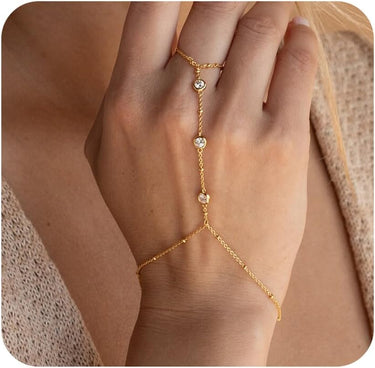 - Our Beaded Hand Bracelet combines both a dainty bracelet and a chain ring for the best of both worlds. Wear alone and still have the feeling of entire jewelry look, or pair with your favorite rings to accentuate the boldness of your outfit. Either way, there is no doubt that you will turn heads with this statement piece.