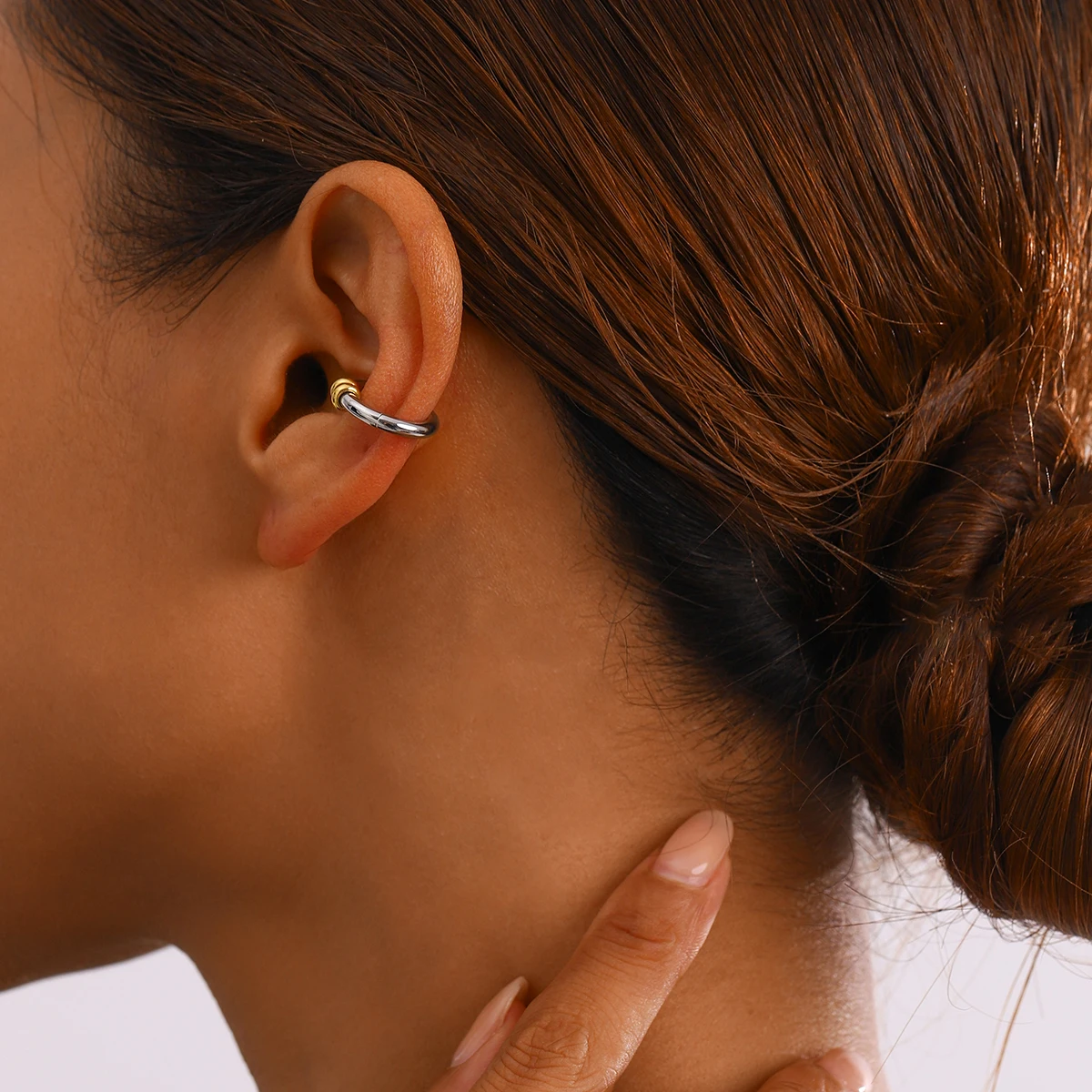 Creative 18K Gold Plated Stainless Steel Geometric Color Matching Ear Clip Series Women Waterproof Attractive Jewelry