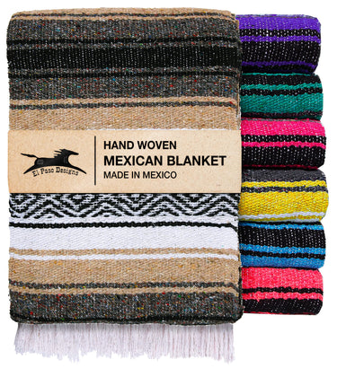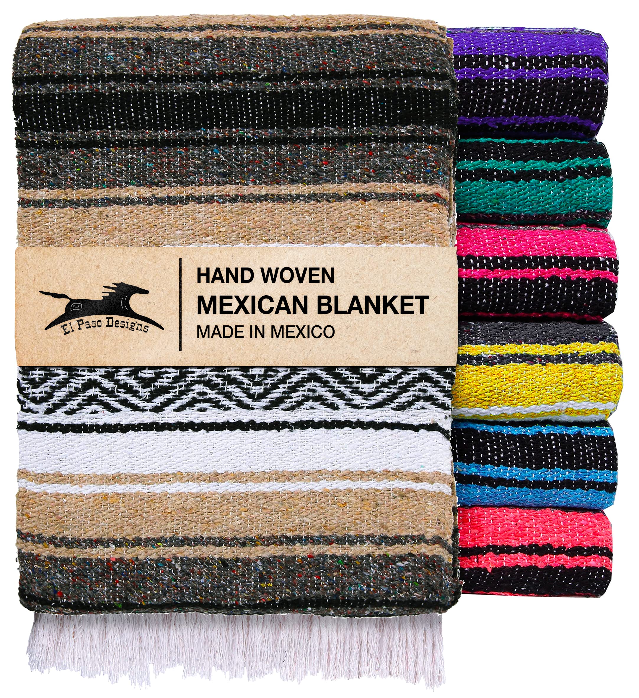 - TRADITIONAL HAND-MADE QUALITY: Carefully crafted by Mexican artisans located in Tlaxcala, Mexico, each tassel is individually hand-tied to produce a high-quality authentic Mexican Yoga Blanket. These blankets are soft, thick, and available in a wide variety of vivid colors.