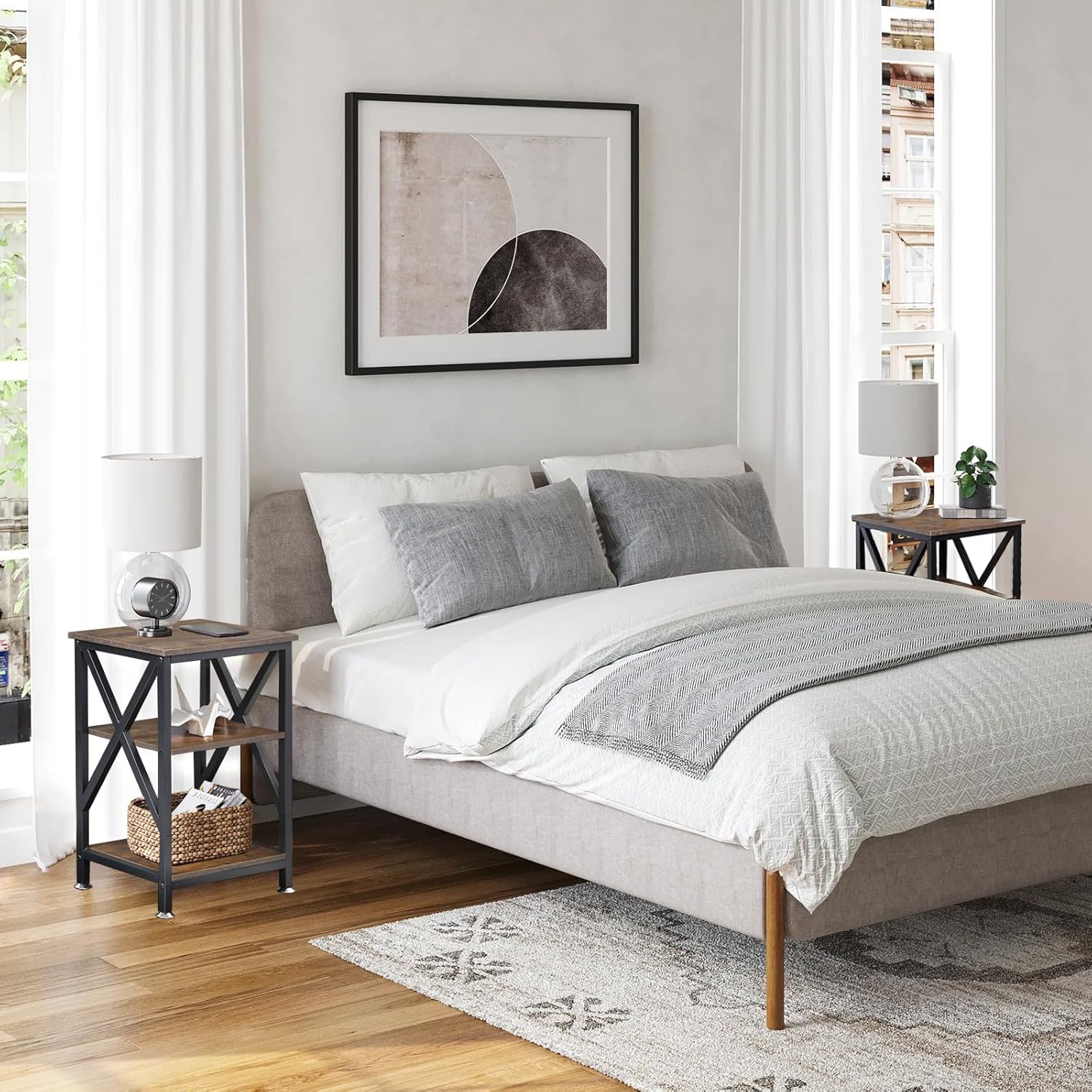 - ✔End Tables Set of 2- 3-tier end tables living room set of 2 with stable X-shaped structure, ideal as sofa side table, bedside table, coffee table, storage rack, etc.