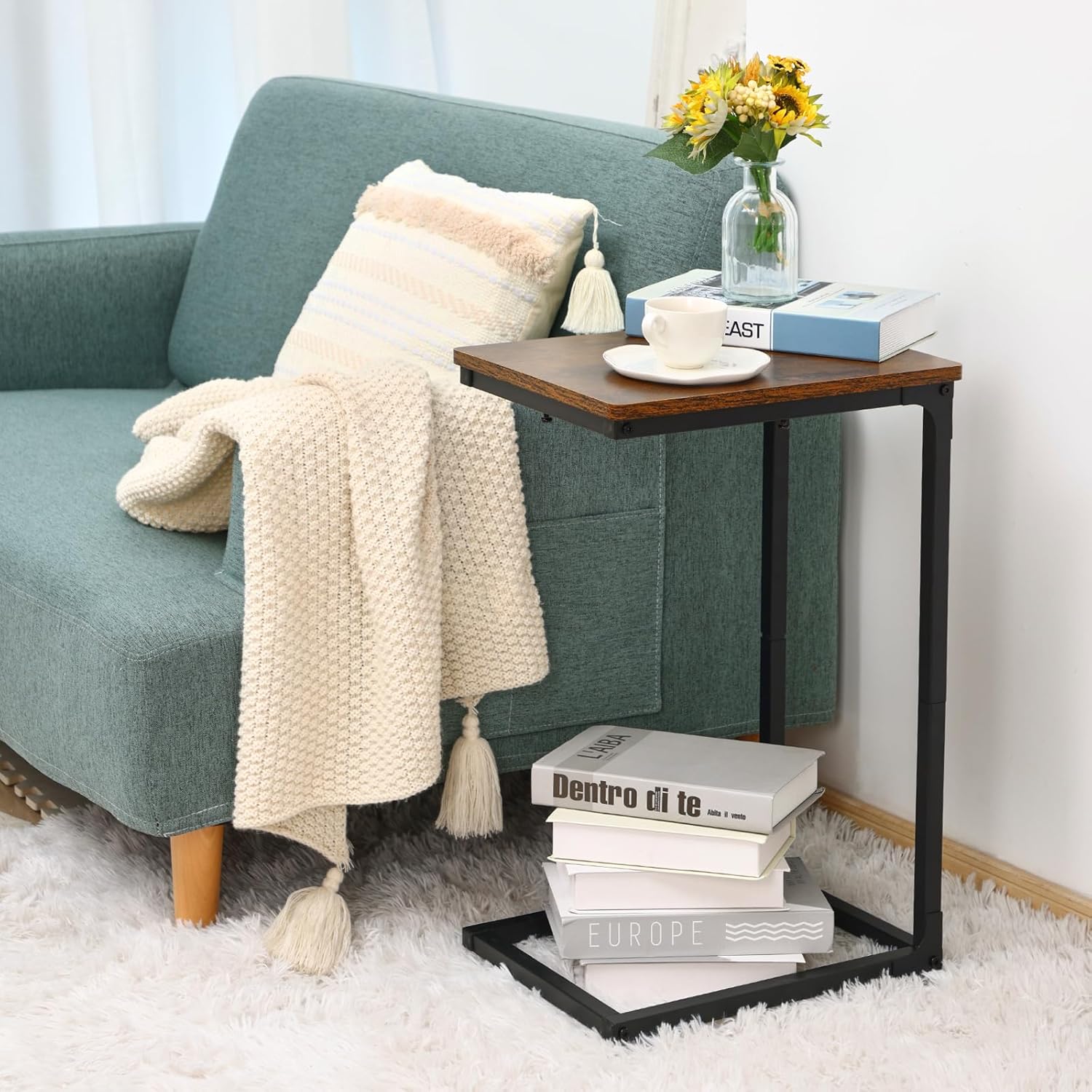 - 【C-Shaped Table Design】This C-shaped coffee table can be easily slid under the sofa. When you are using it, you can easily access the laptop, books, magazines, coffee and other items placed on the side table. After use, you can put it It slides under the sofa to save space.