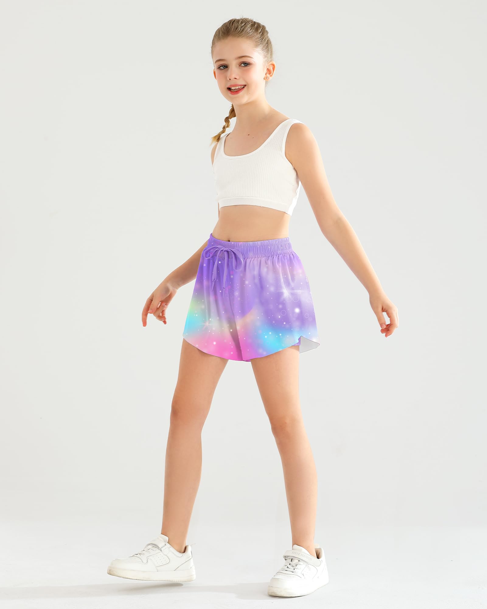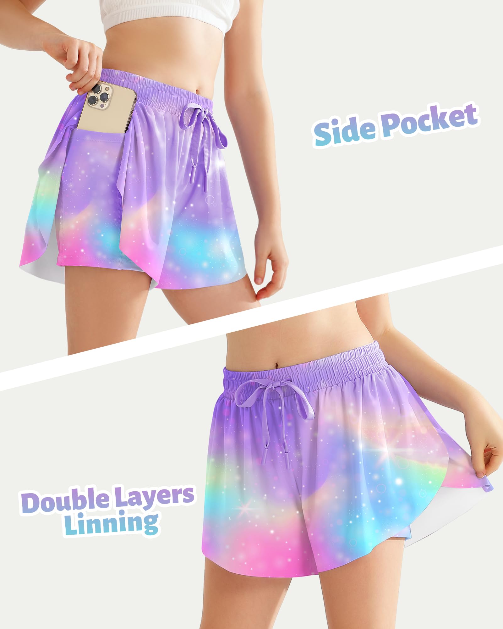 - 2 in 1 Butterfly Shorts - Girls athletic shorts designed with flowy outer skirt and a stretchy inner layer, which can protect your privacy without being restricted when you jump, hop and stretch